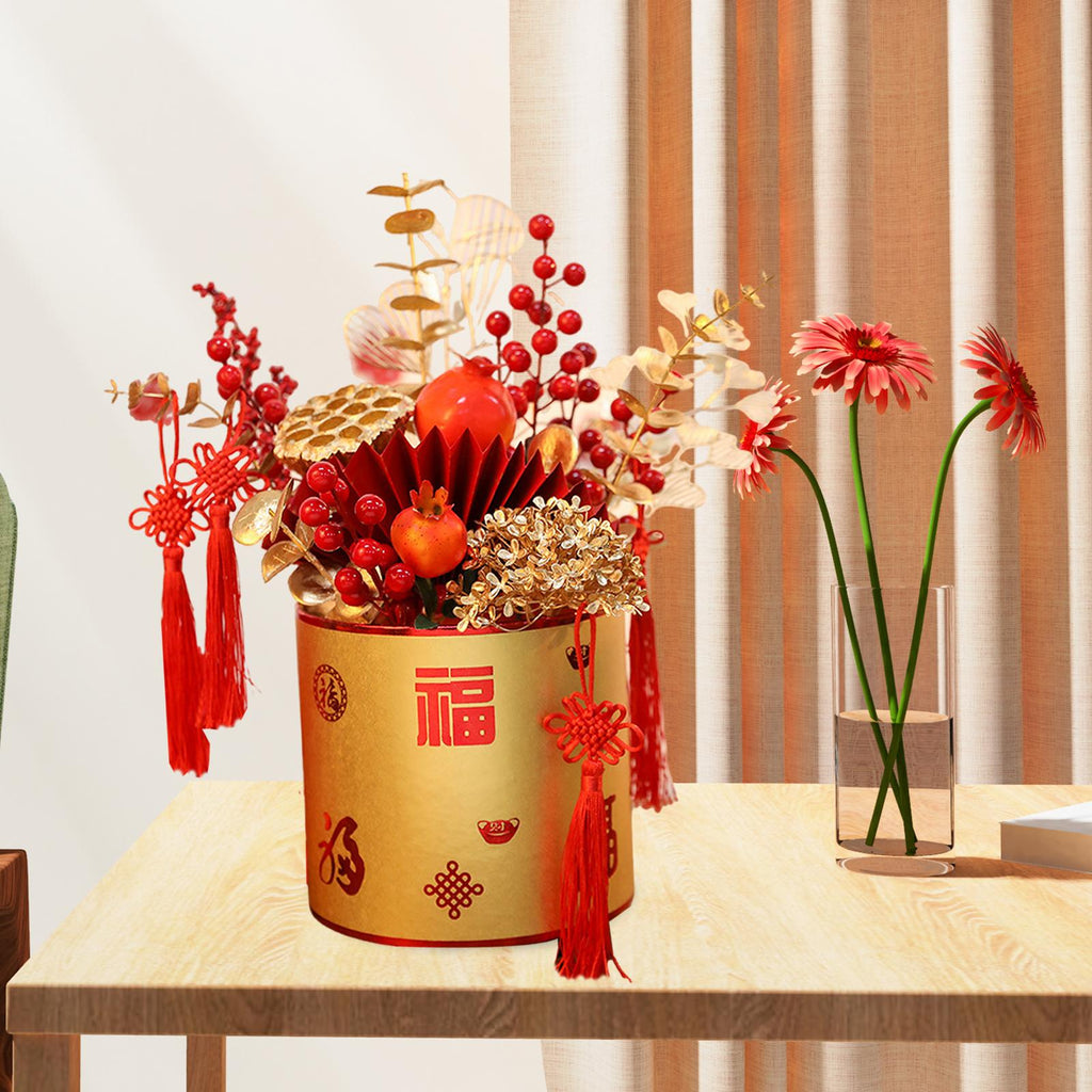 Design: artifical red berries, Chinese traditional pattern, vibrantly colored, decorative table ornament