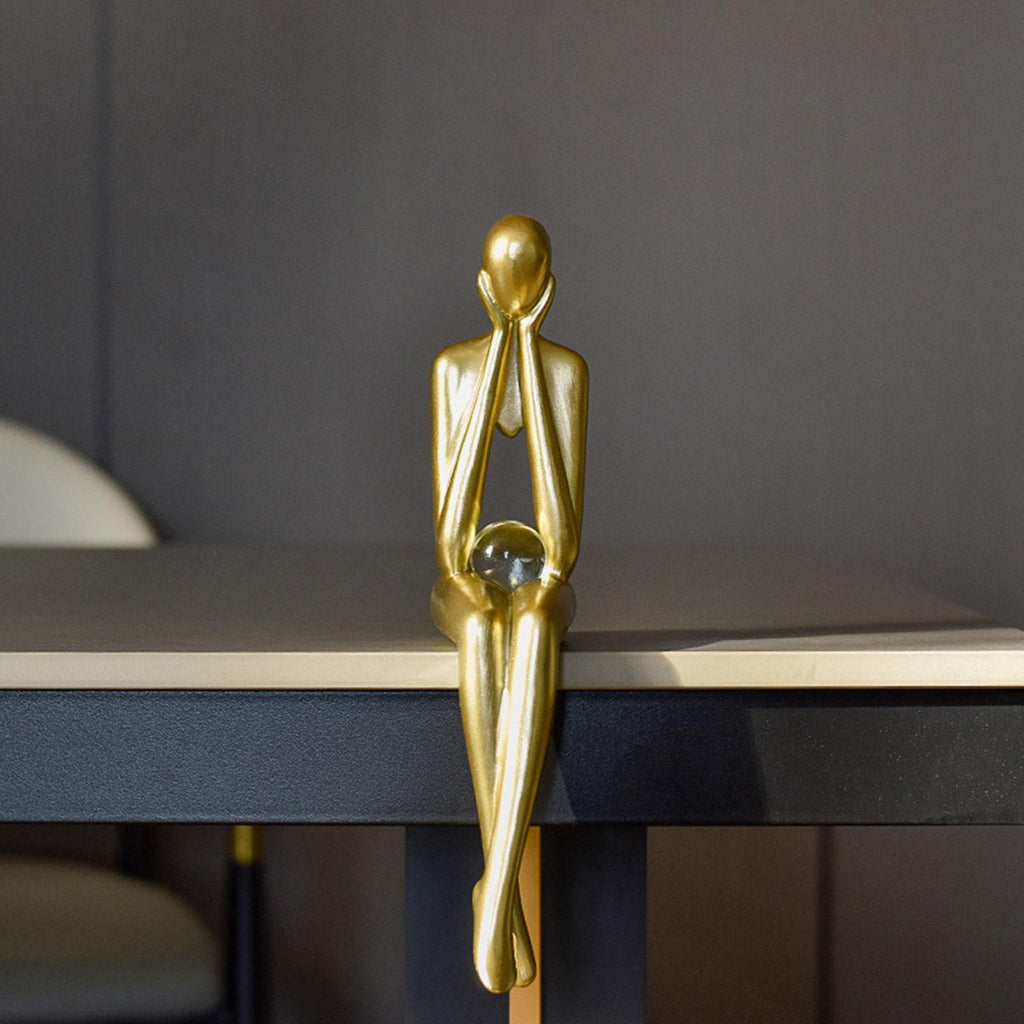 Maxbell Sitting Thinker Statue Abstract Figurine Creative Resin Crafts for Decor StyleC