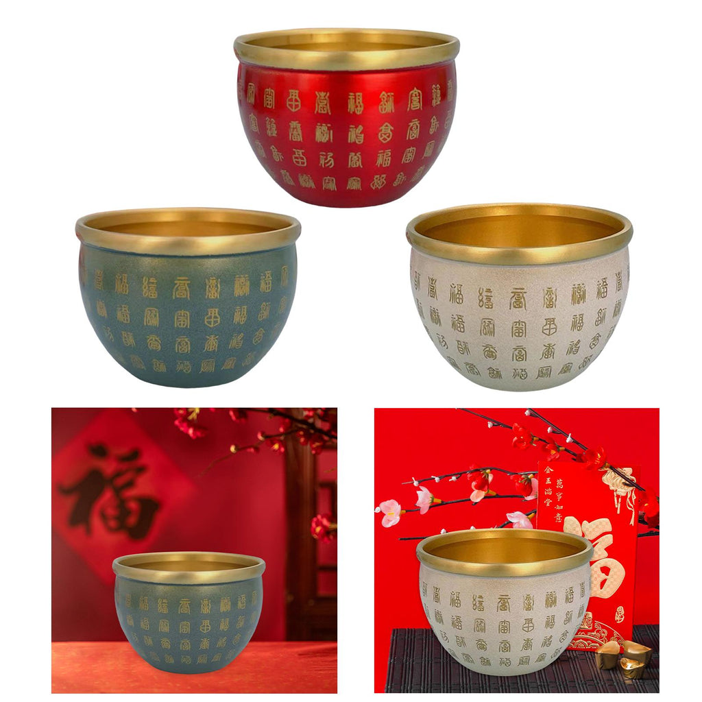 - TRADITIONAL DECOR: Chinese style brass bowl. There are a variety of fonts of "Fu" on the outside of the bowl. Exquisite details, add artistic flavor to your interior decoration.