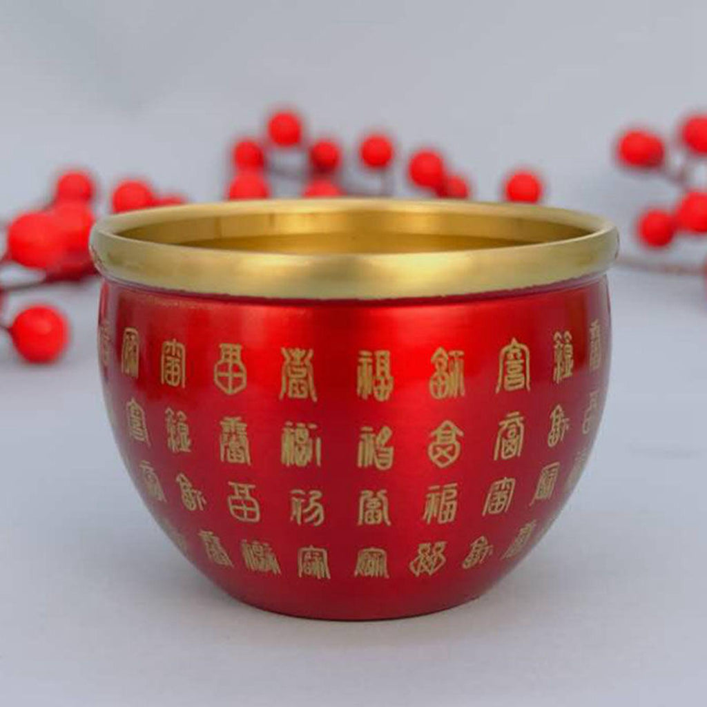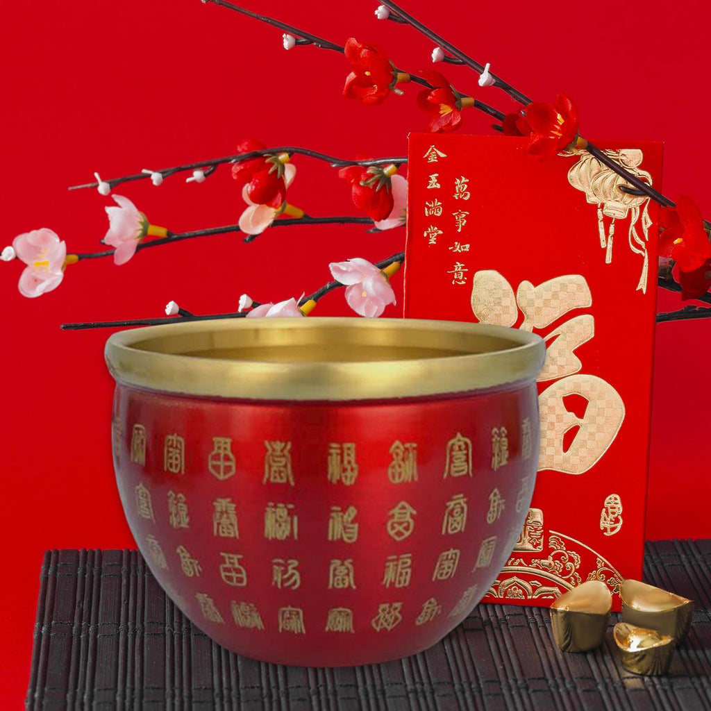 Maxbell Maxbell Small Brass Feng Shui Bowl Desktop Lucky Decor Fortune Folk for Success Red