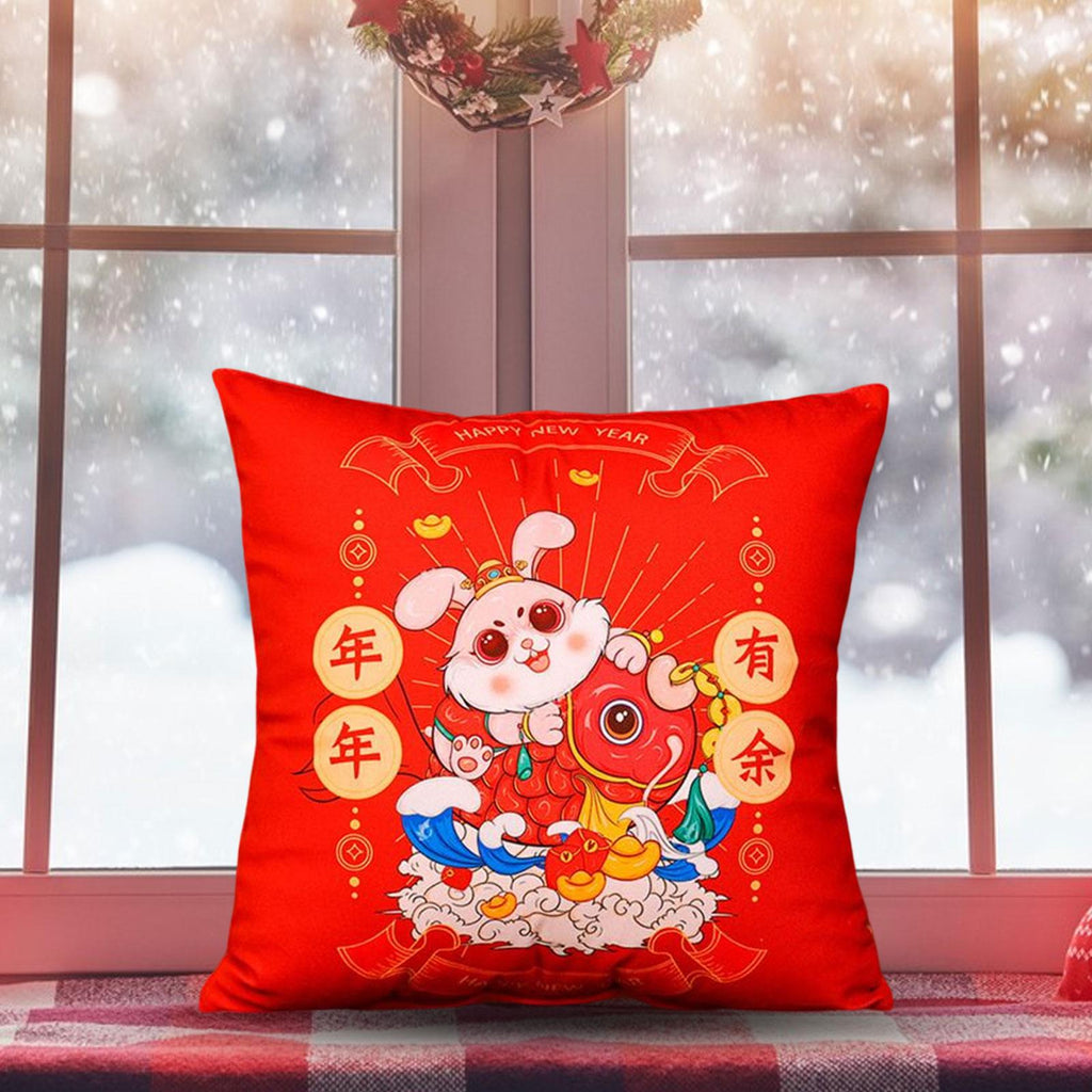 Material: 2023 Chinese New Year rabbit print pillow, made of high quality cloth and plush material, soft and comfortable, fine texture, durable.
