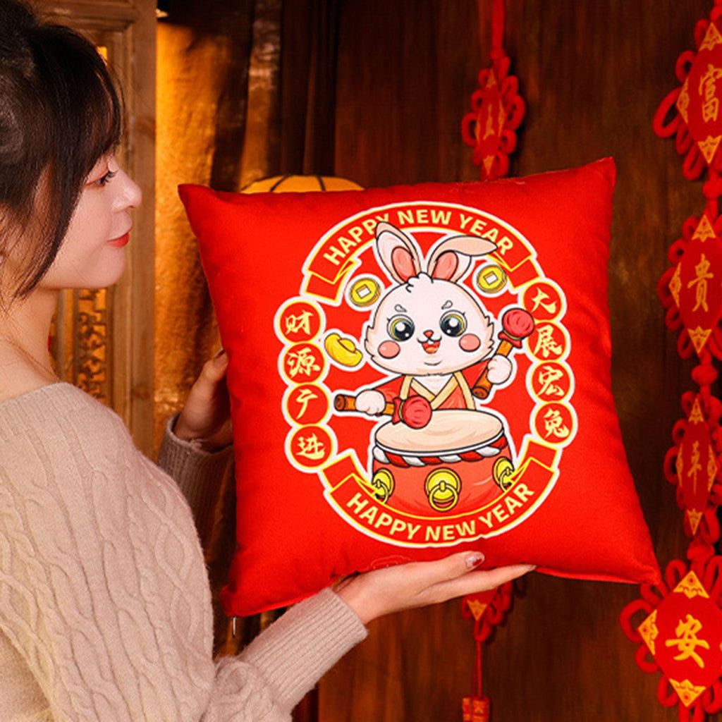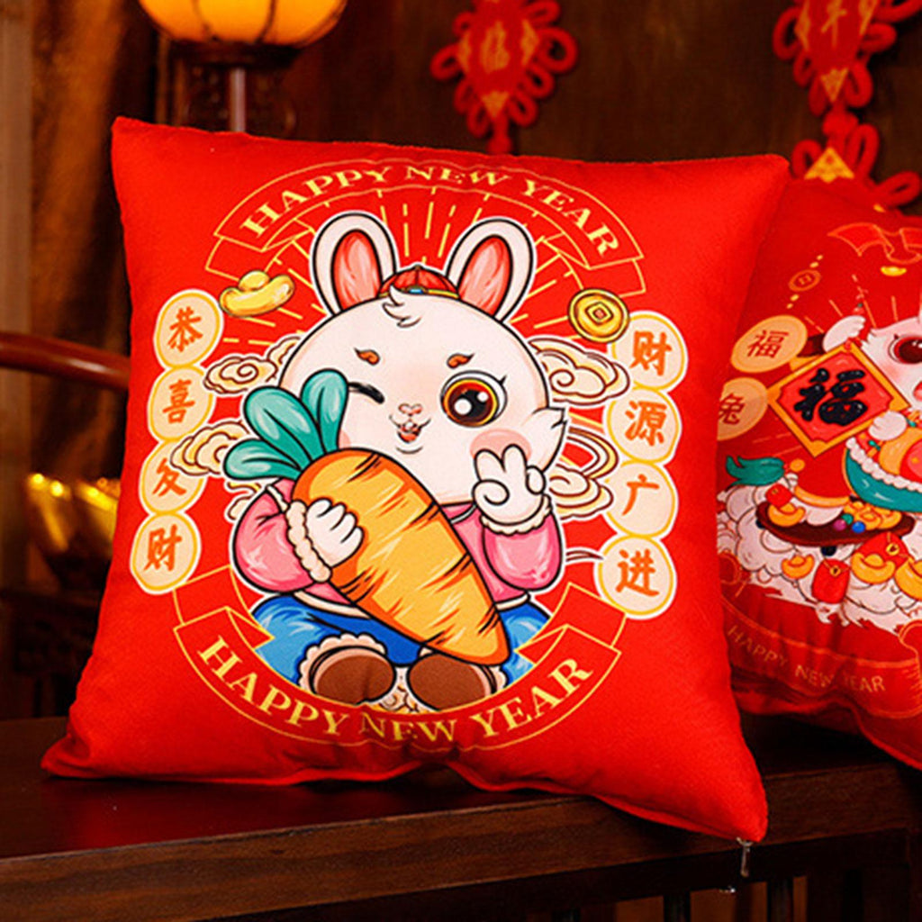 Material: 2023 Chinese New Year rabbit print pillow, made of high quality cloth and plush material, soft and comfortable, fine texture, durable.