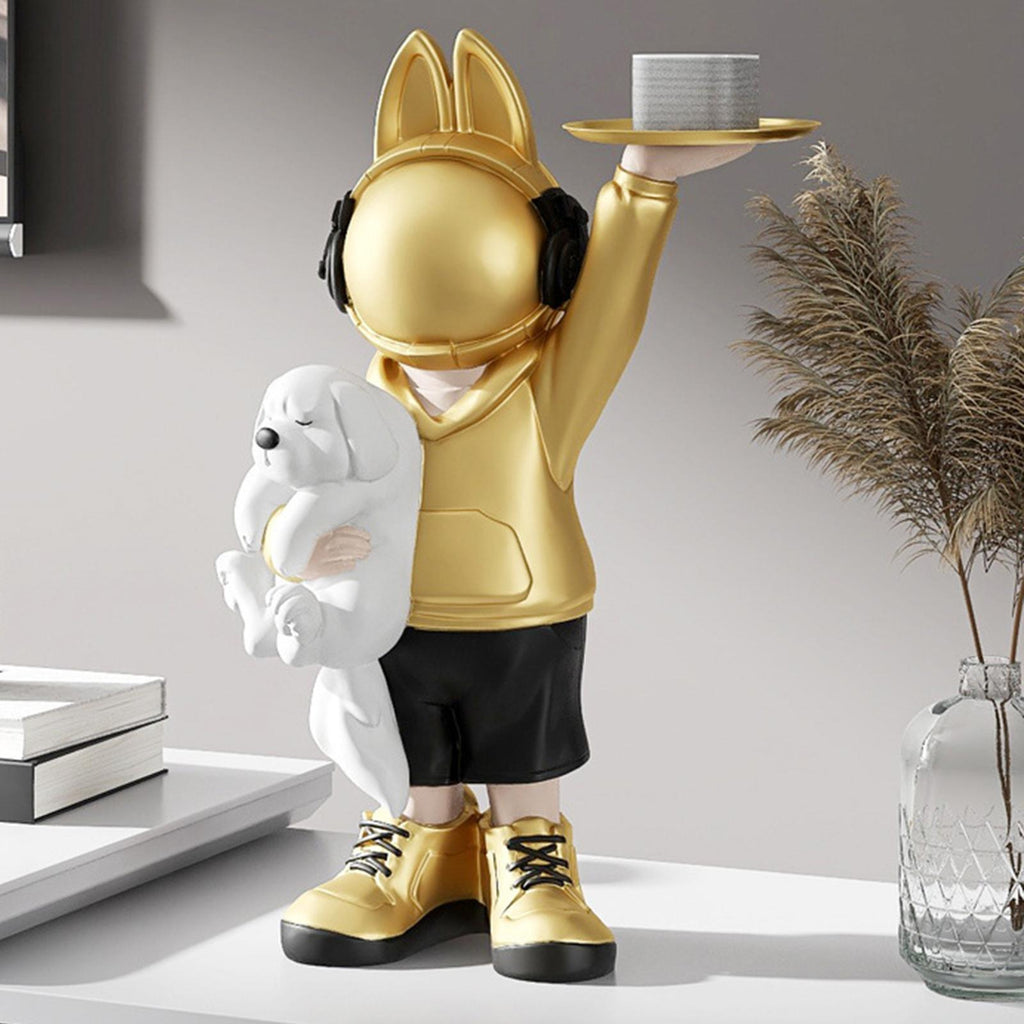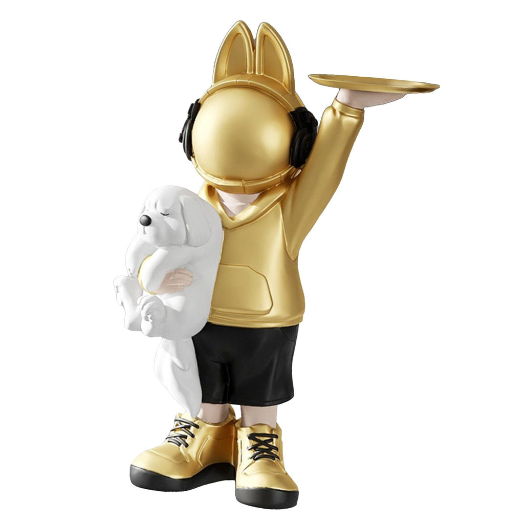 Maxbell Statue Storage Tray Figurine Sculpture Decor for Home TV Cabinet Restaurant Golden