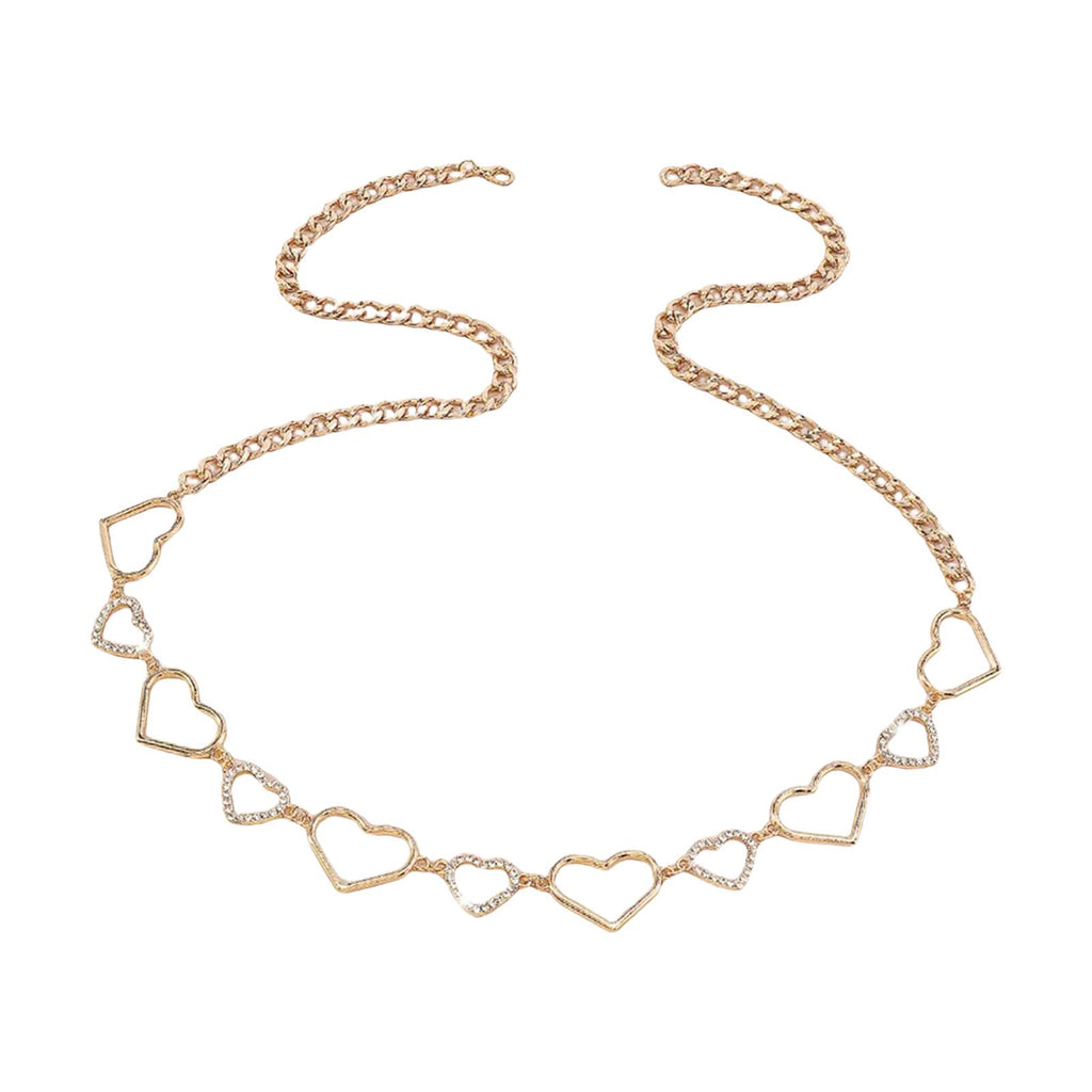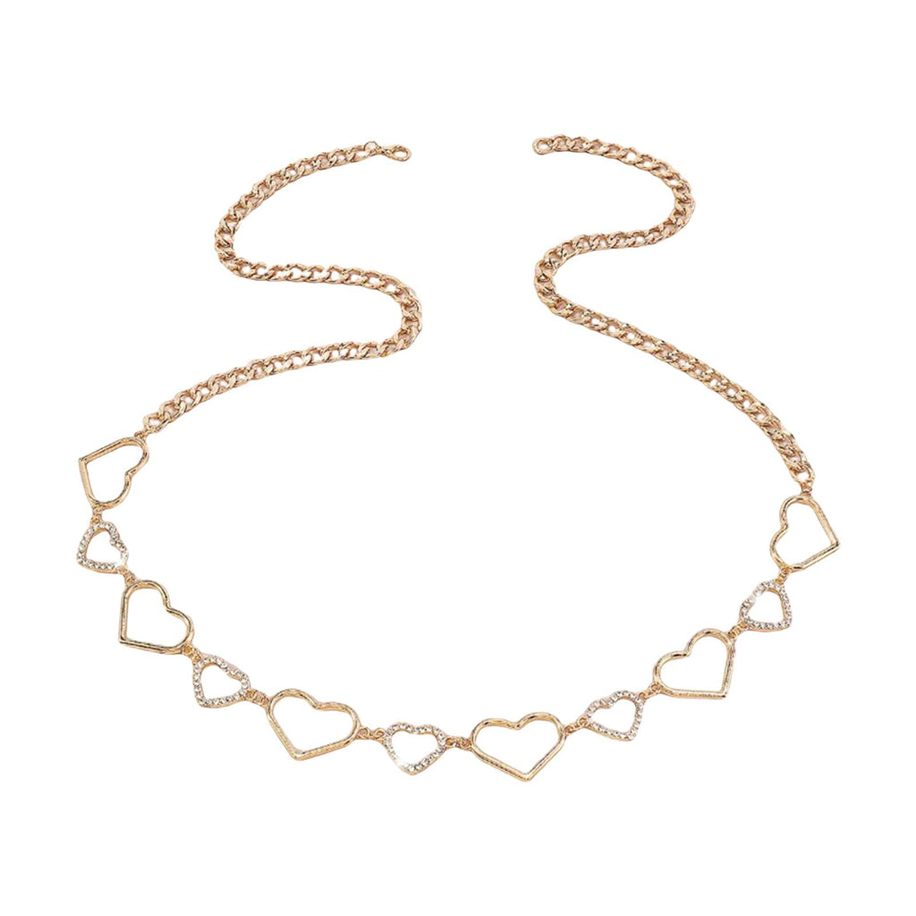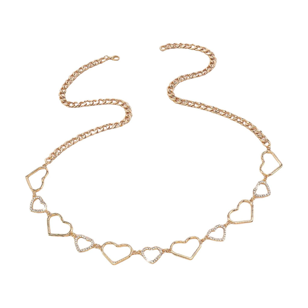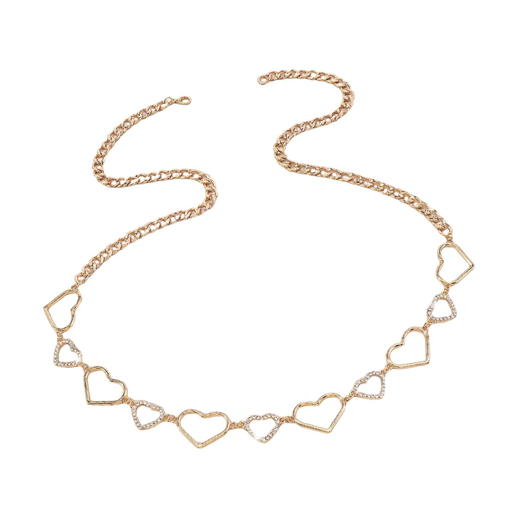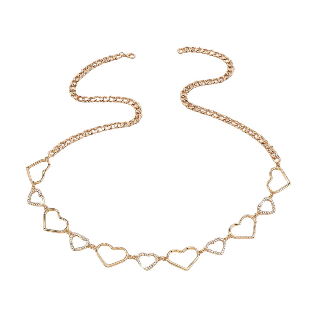 Maxbell Stylish Women Waist Chain Belt Rhinestone Party Heart Decorative Metal Chain Gold