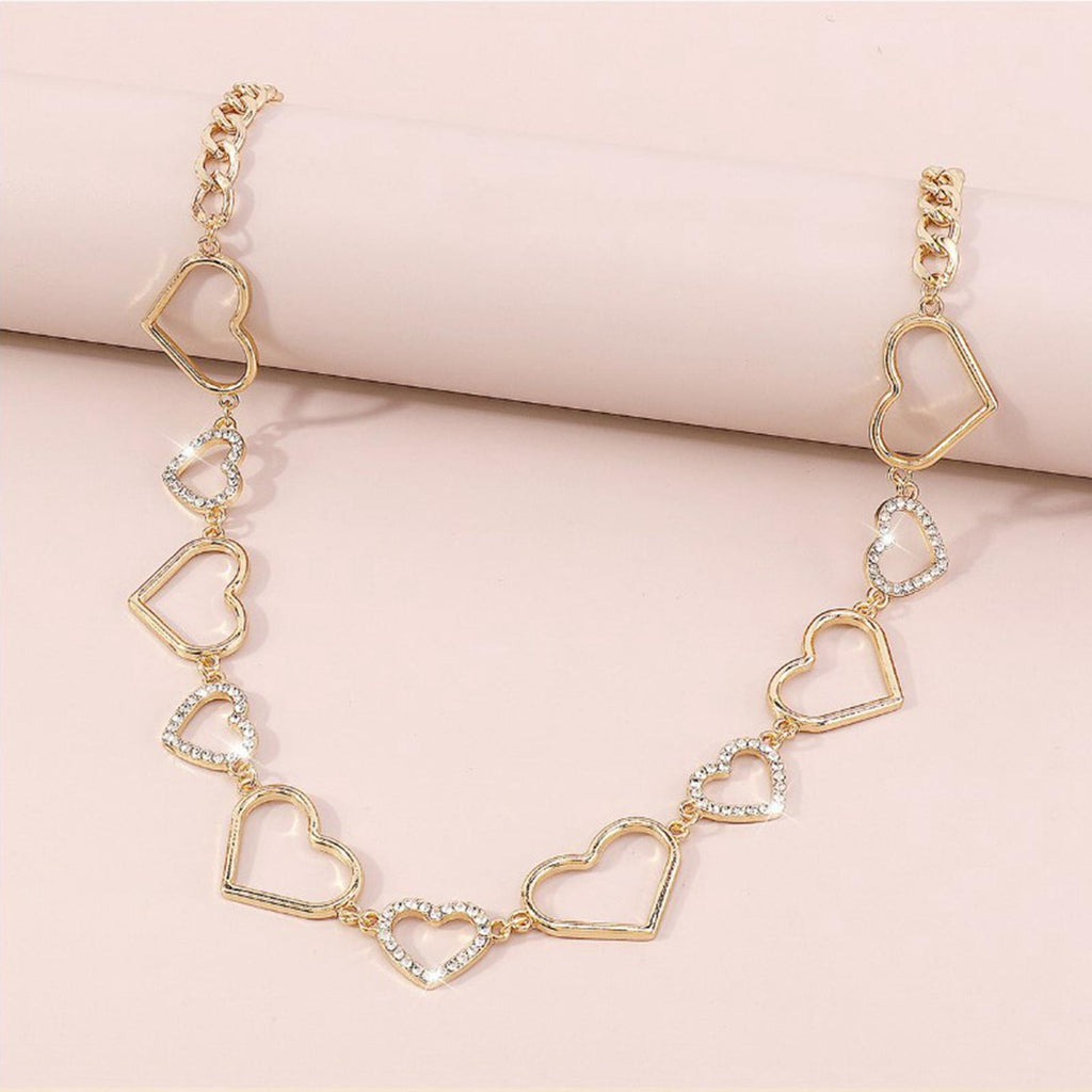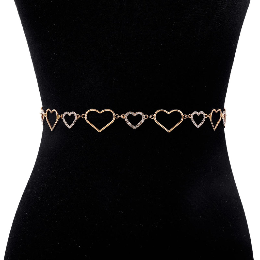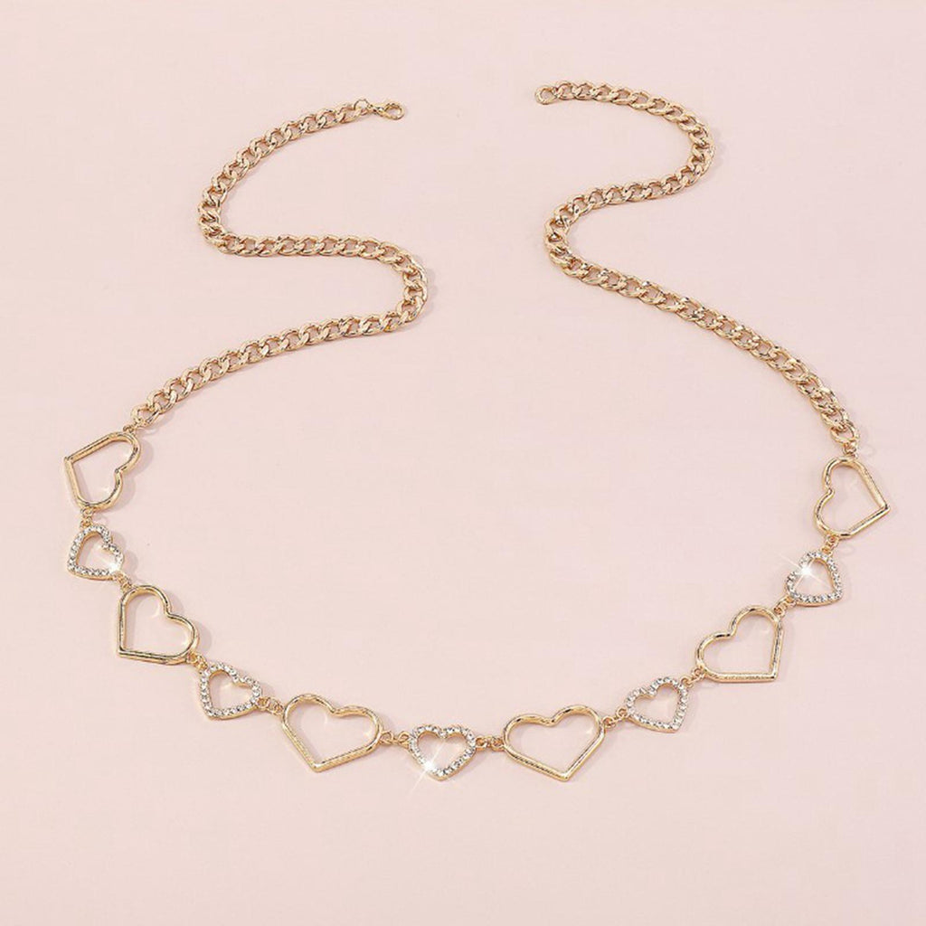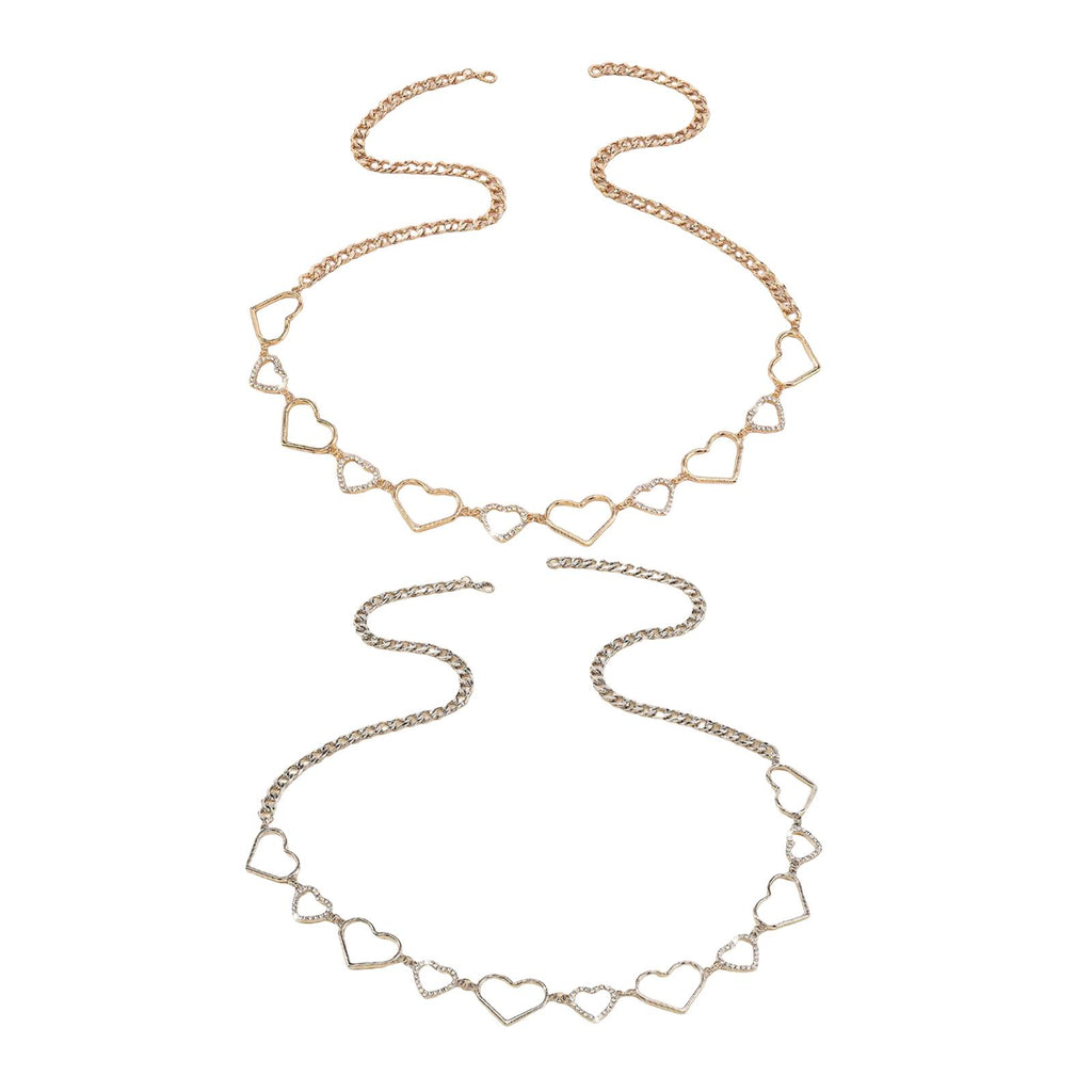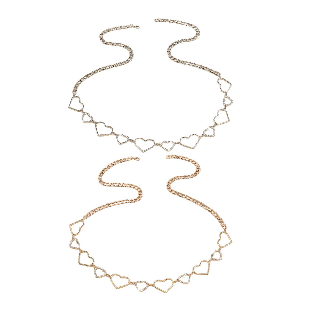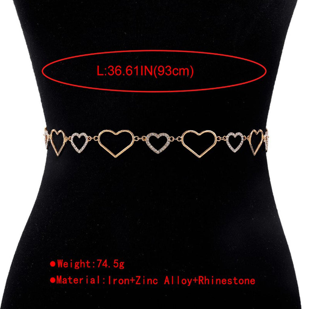 Maxbell Stylish Women Waist Chain Belt Rhinestone Party Heart Decorative Metal Chain Gold