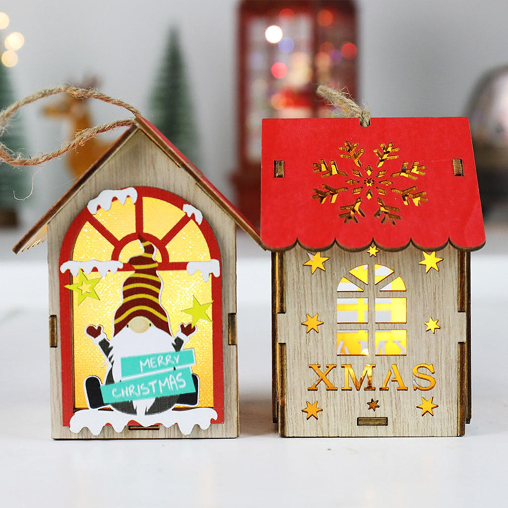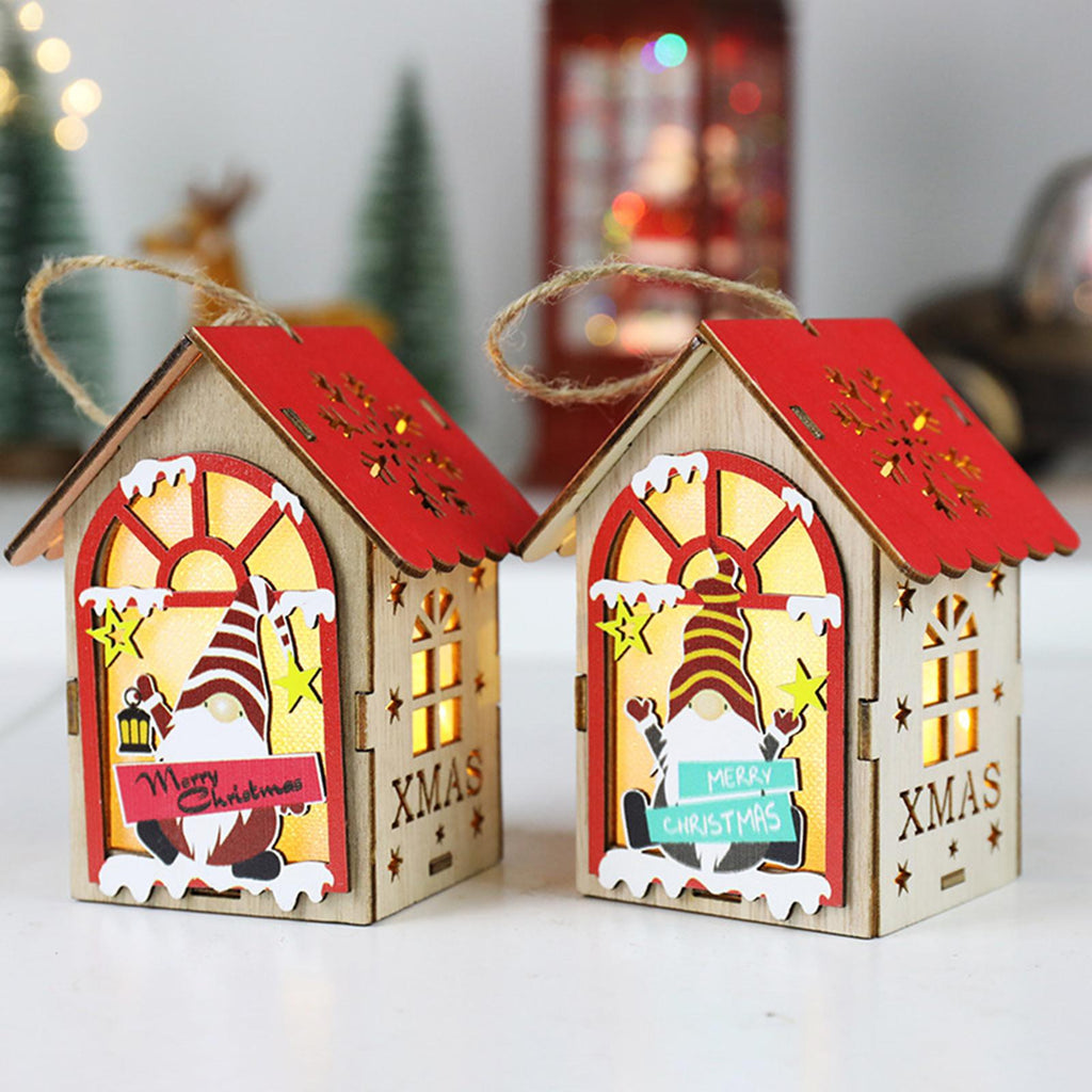 Christmas decoration pendant: Nordic style wooden house model, Christmas tree, window pendant, cute Christmas tree pendant Christmas ornaments.