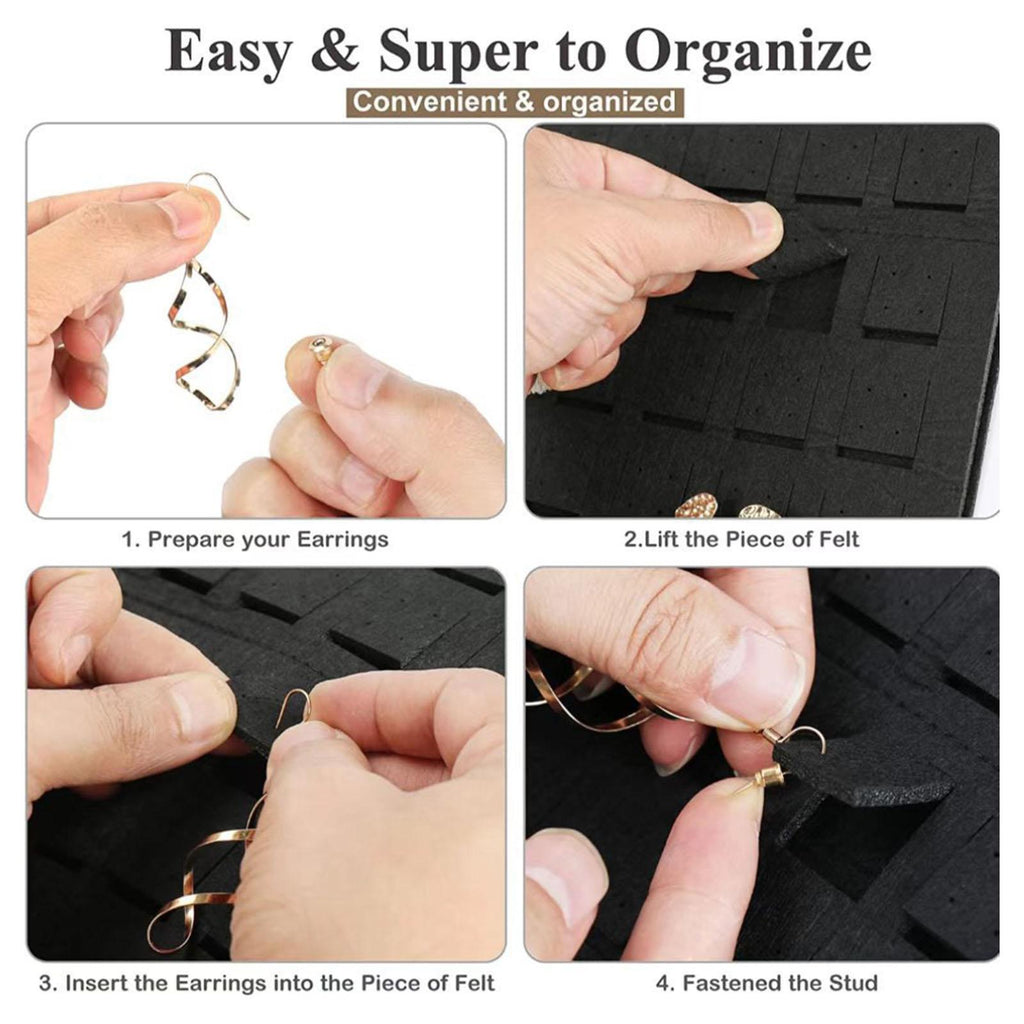 Large Storage Capacity: Size: 22.5inchx13.6inches, the earring organizer can hold up to 300 pairs earrings((4 holes per one Felt piece for 2 pairs earring) in total for all kinds of earrings