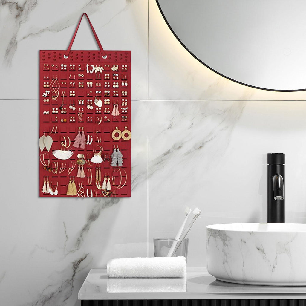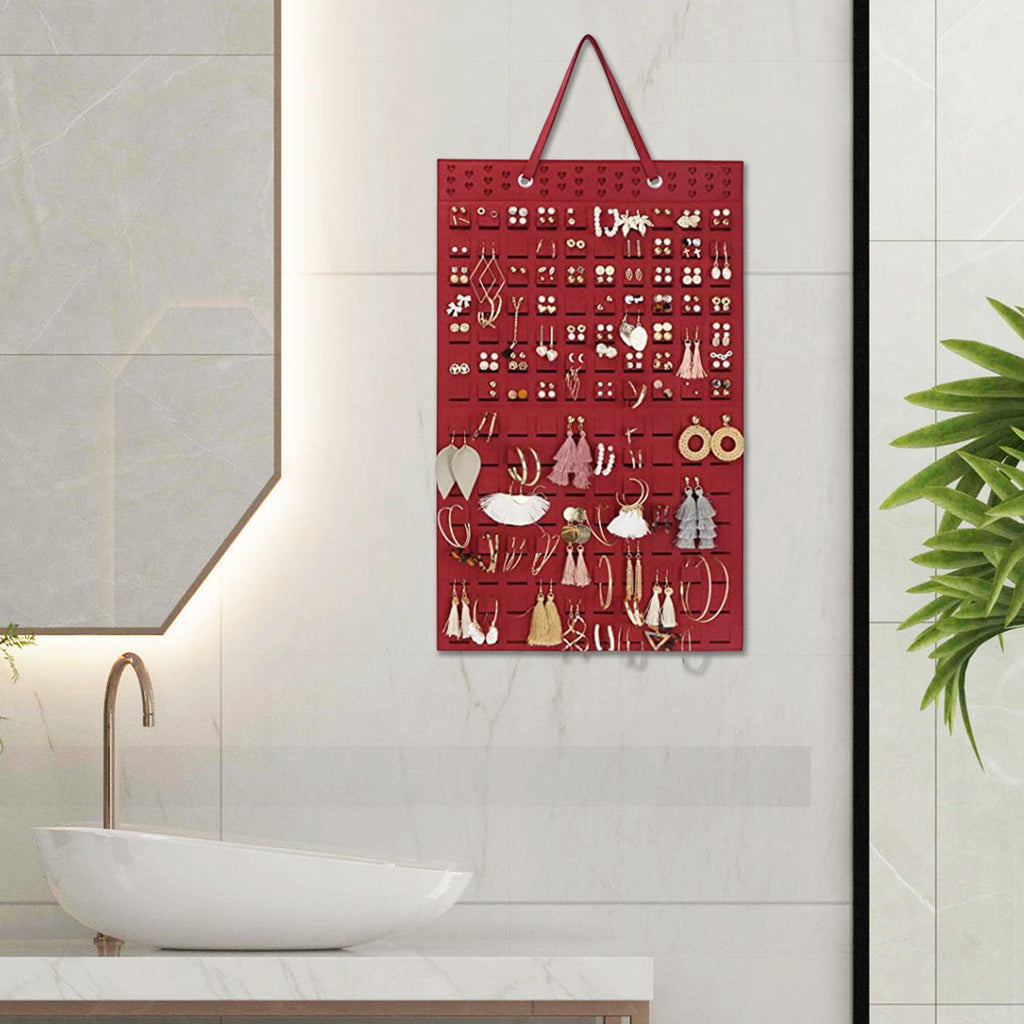 Maxbell Wall Hanging Earring Organizer Storage Holder Collection Home Decoration Red