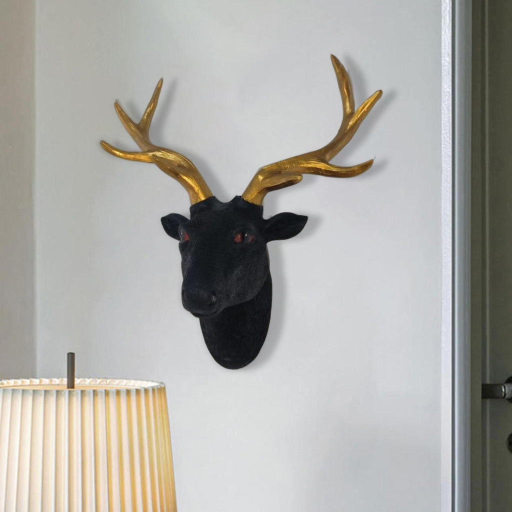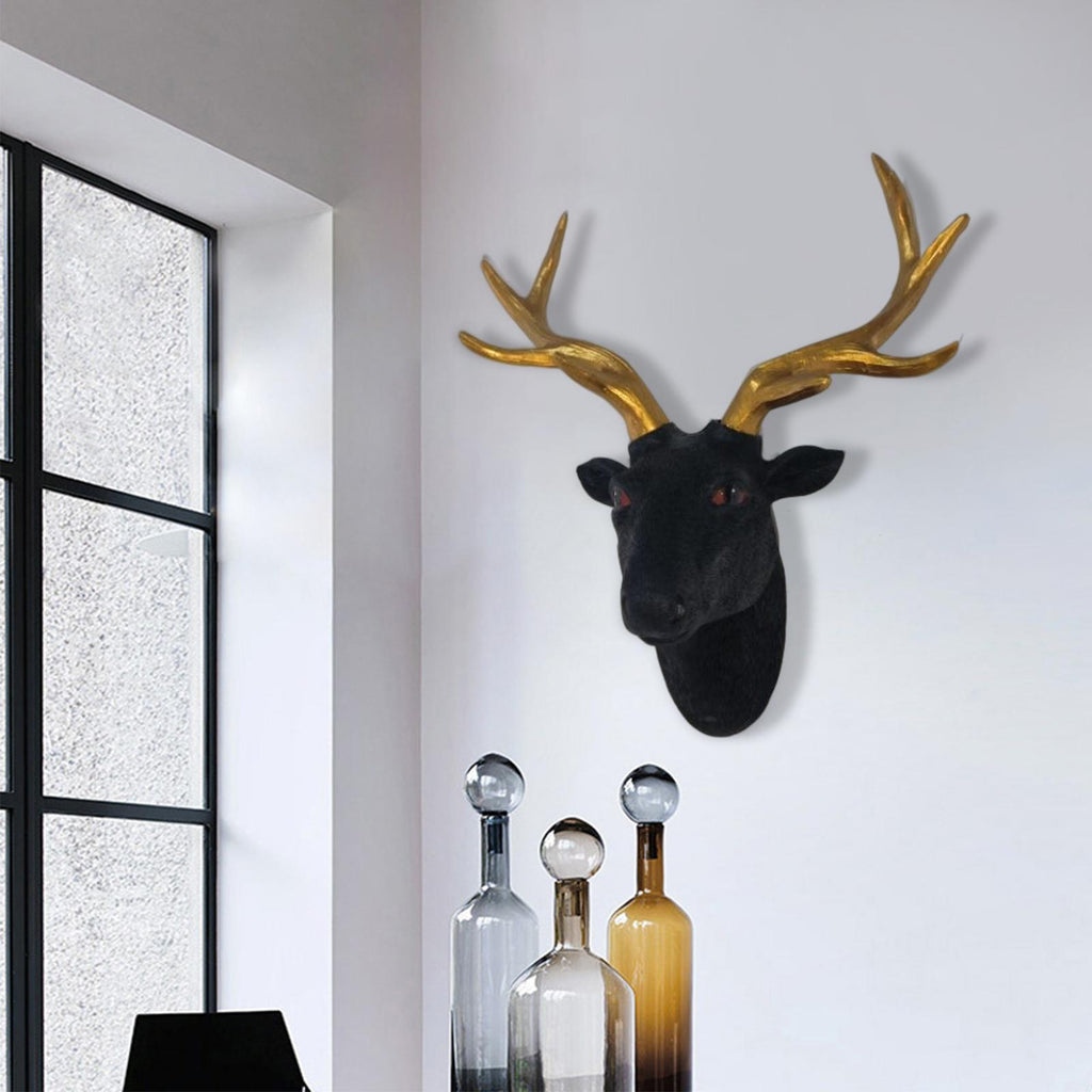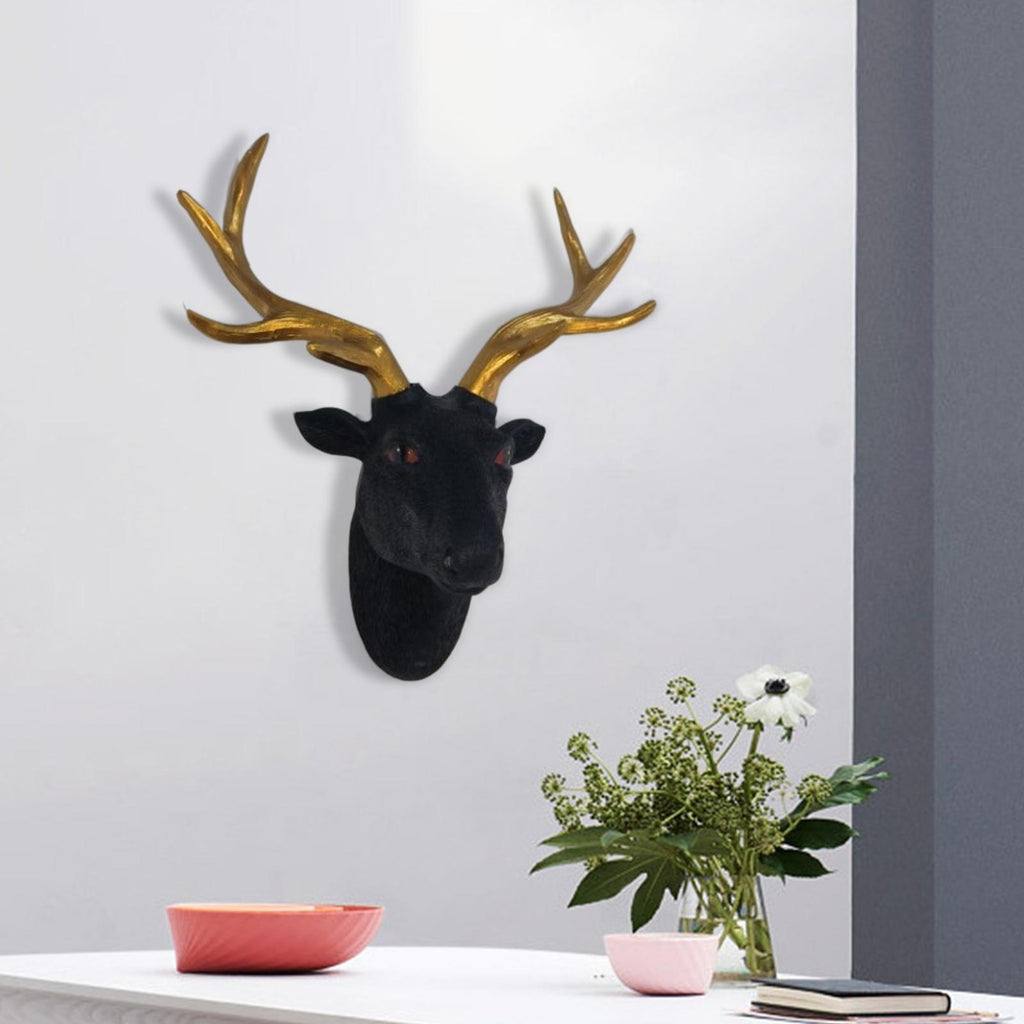 Maxbell Maxbell Wall Mount Deer Head Resin Sculpture Statue for Home Living Room Decoration Black