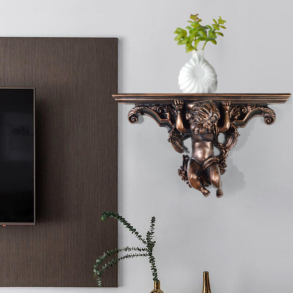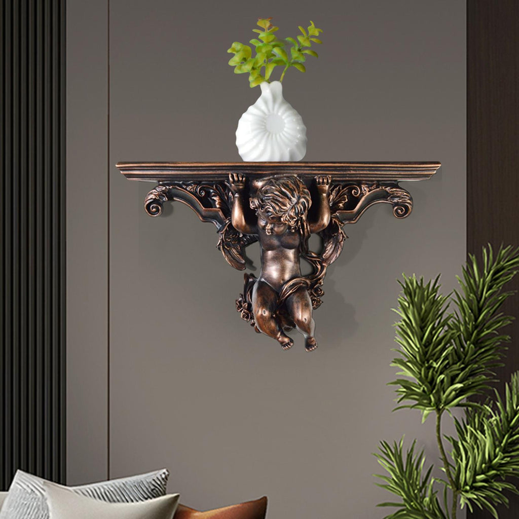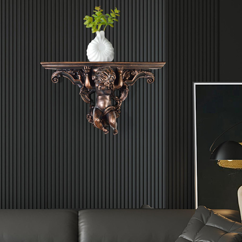 Maxbell Wall Mounted Shelf Ornate Shelves Resin Angel Statue Shelf for Wall Decor Brown