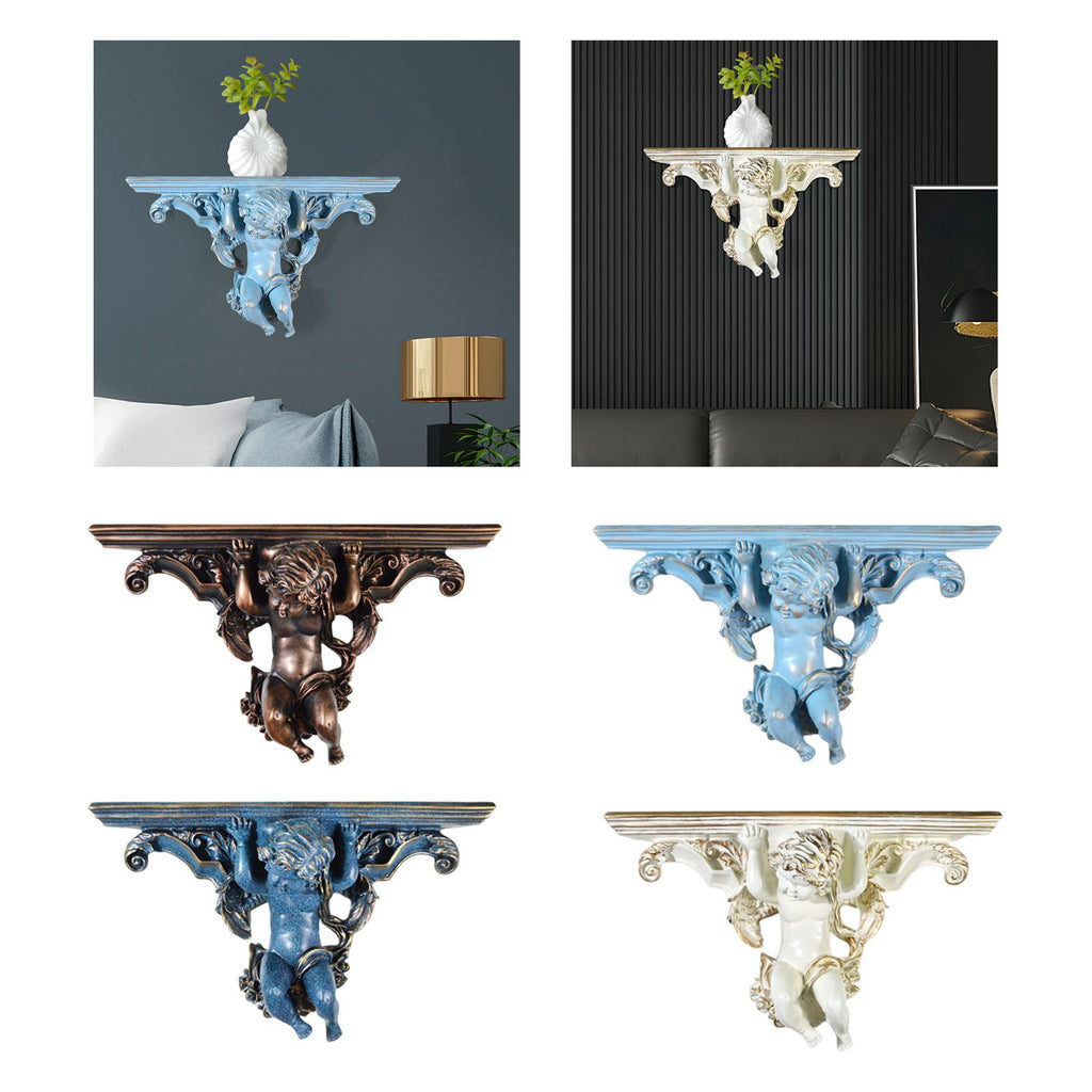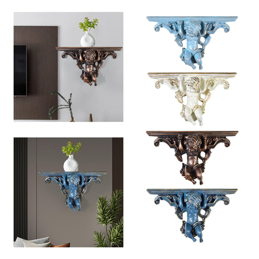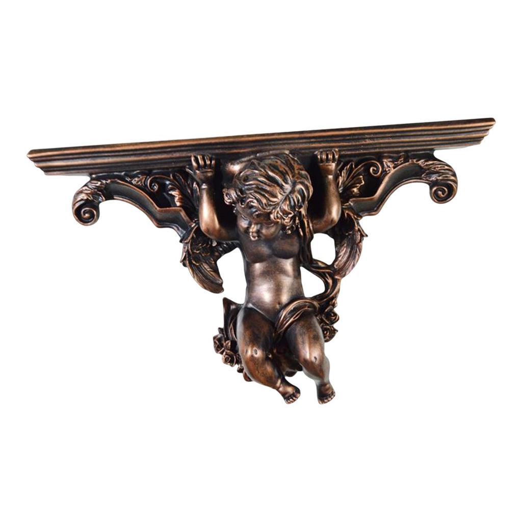 Maxbell Wall Mounted Shelf Ornate Shelves Resin Angel Statue Shelf for Wall Decor Brown