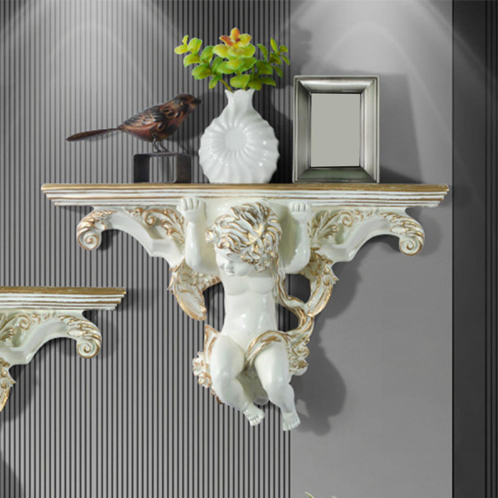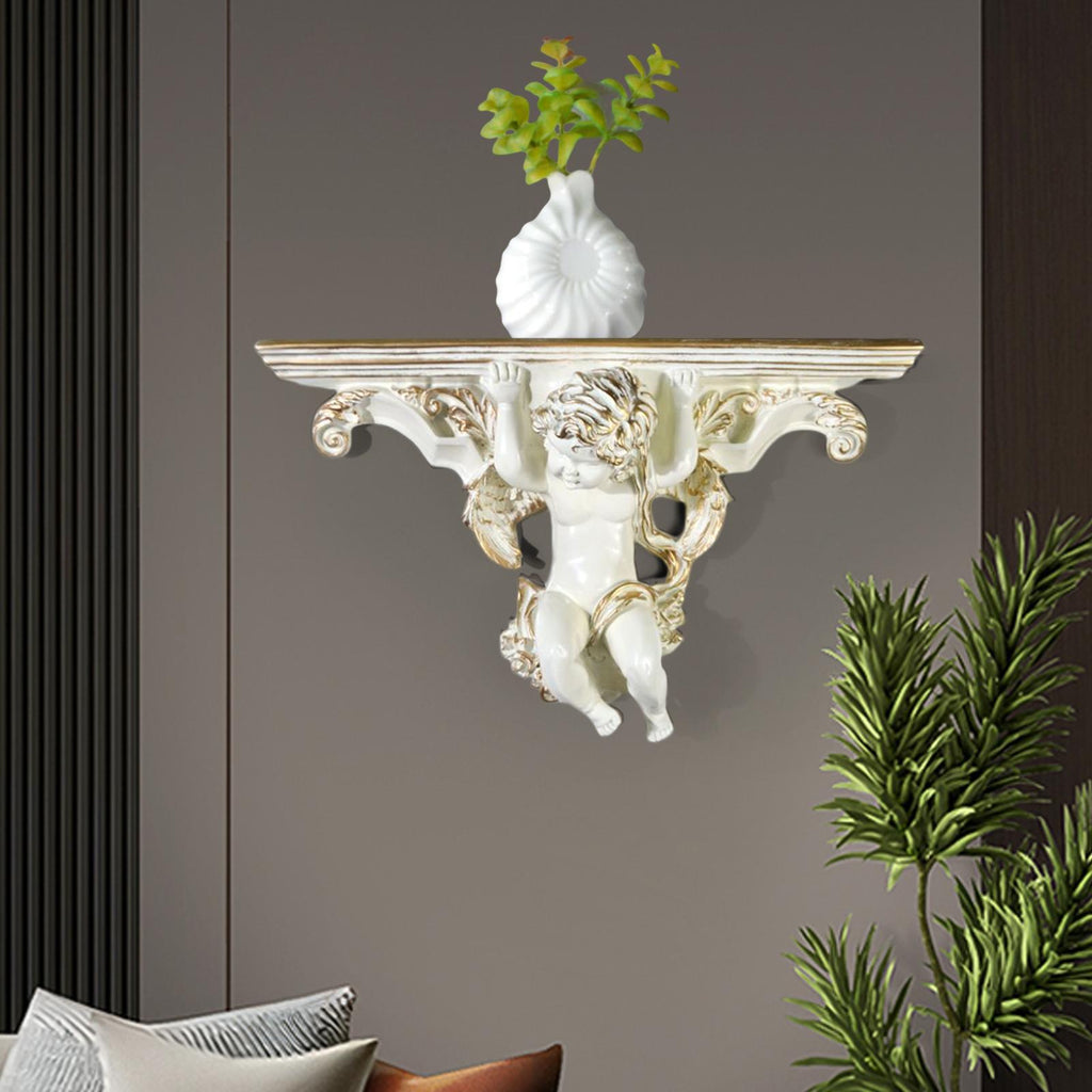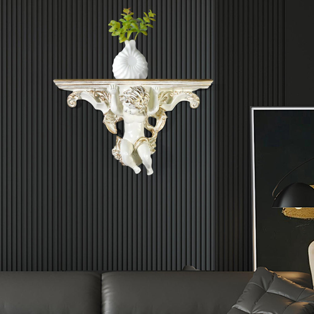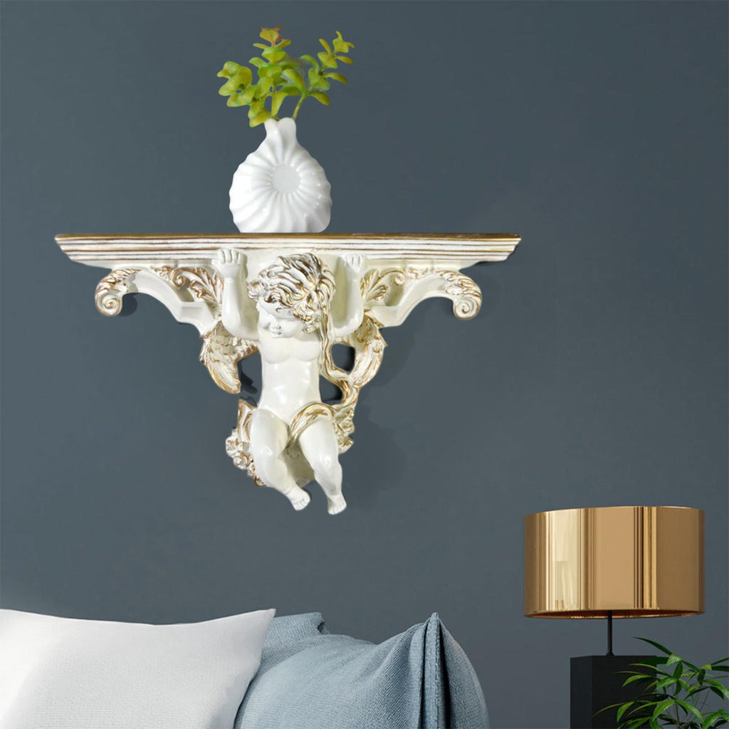Maxbell Wall Mounted Shelf Ornate Shelves Resin Angel Statue Shelf for Wall Decor White