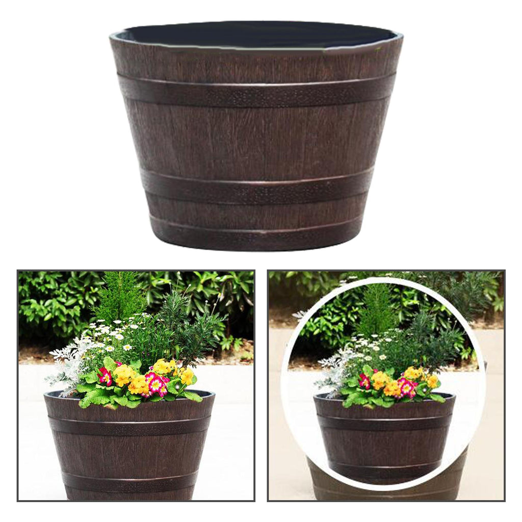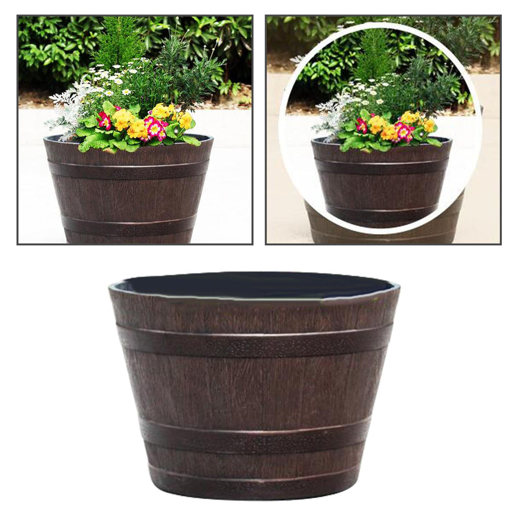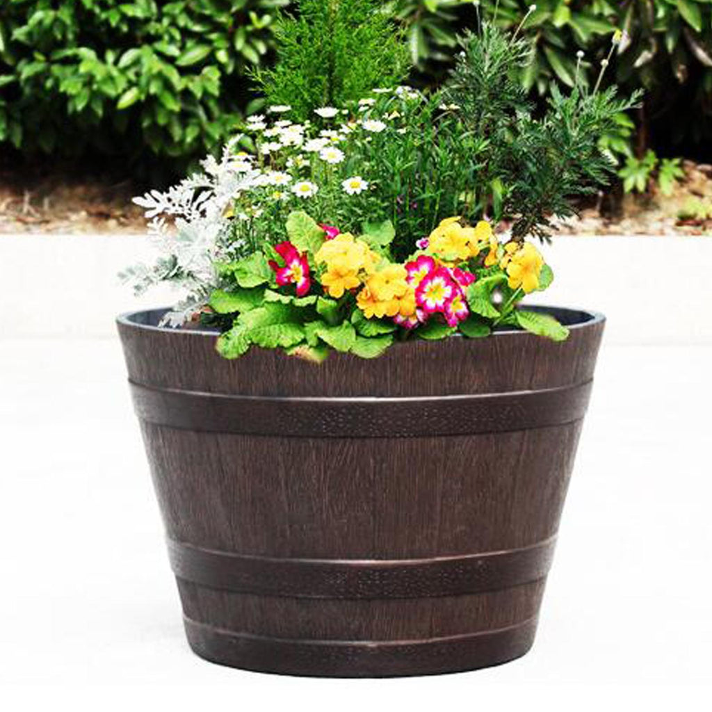 Maxbell Whisky Barrel Garden Planter Resin Rustic Garden Decor Classic 15.5 inch
