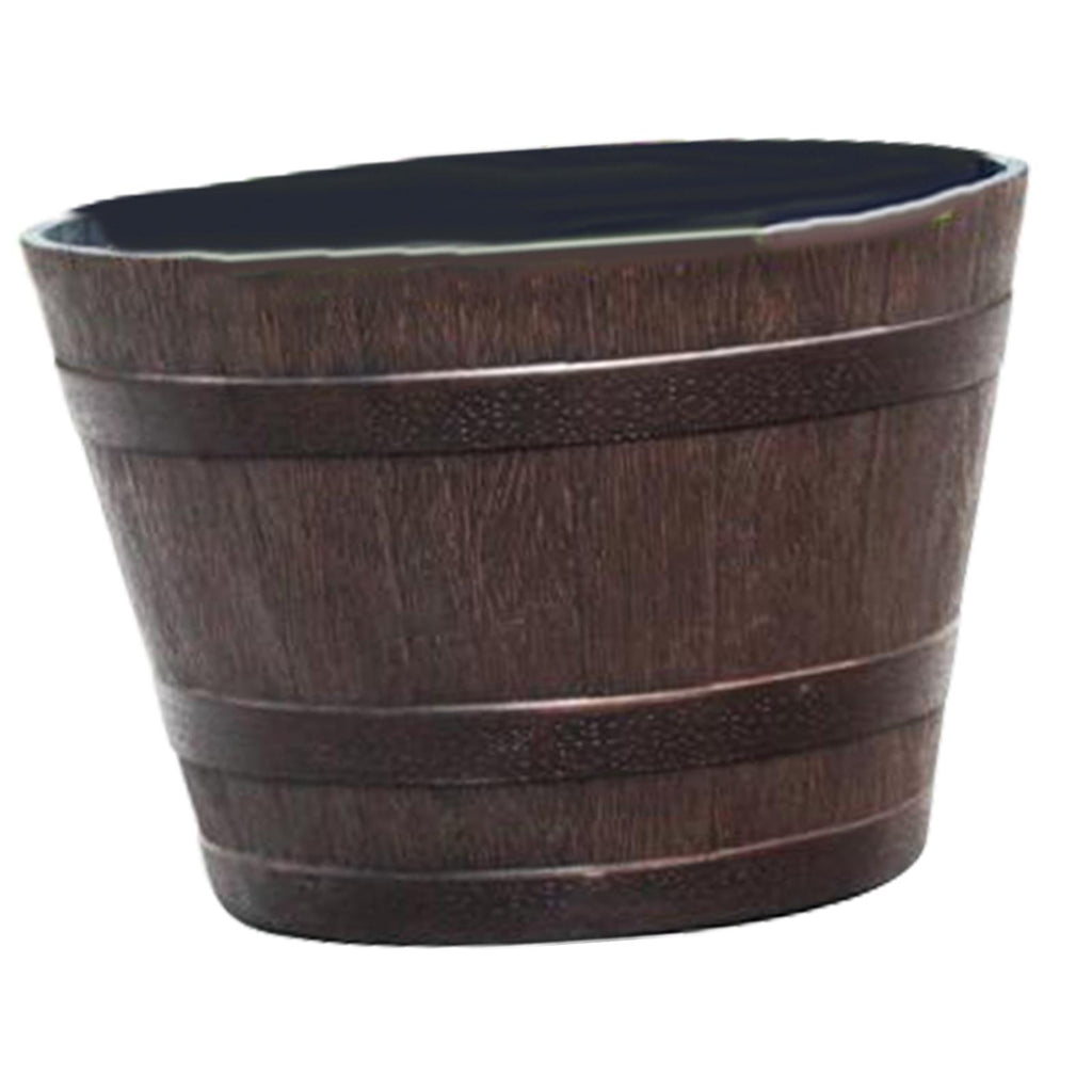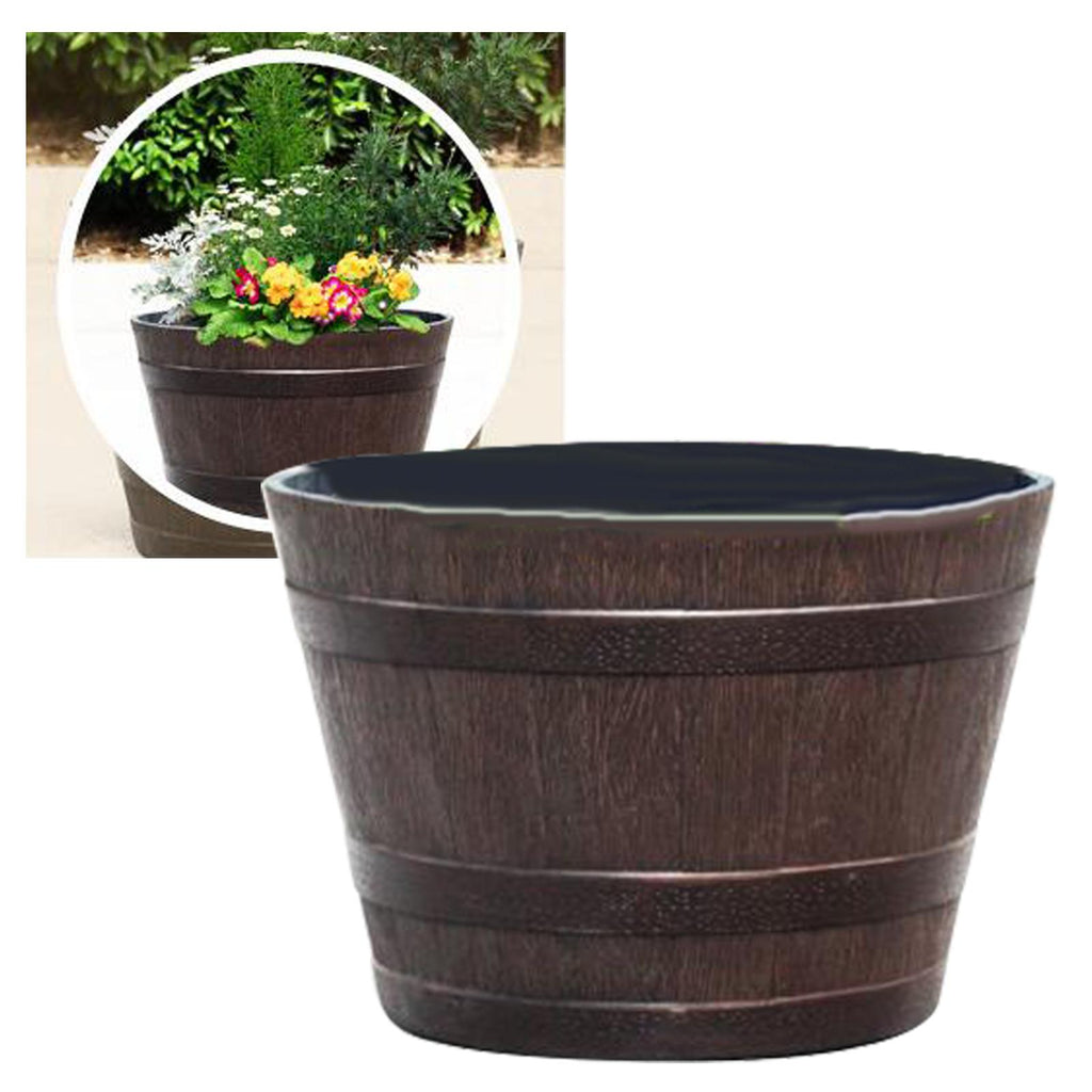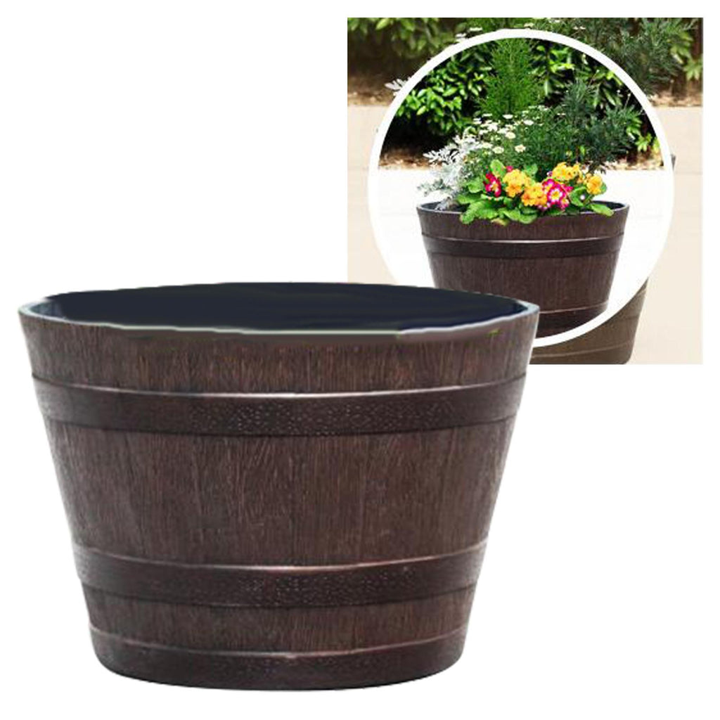 Maxbell Whisky Barrel Garden Planter Resin Rustic Garden Decor Classic 15.5 inch