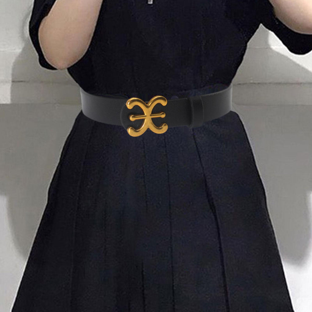Maxbell Women Belt PU Leather Waist Belt Clothing Decoration for Pants Trouser Party Black