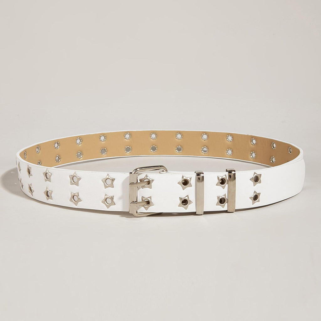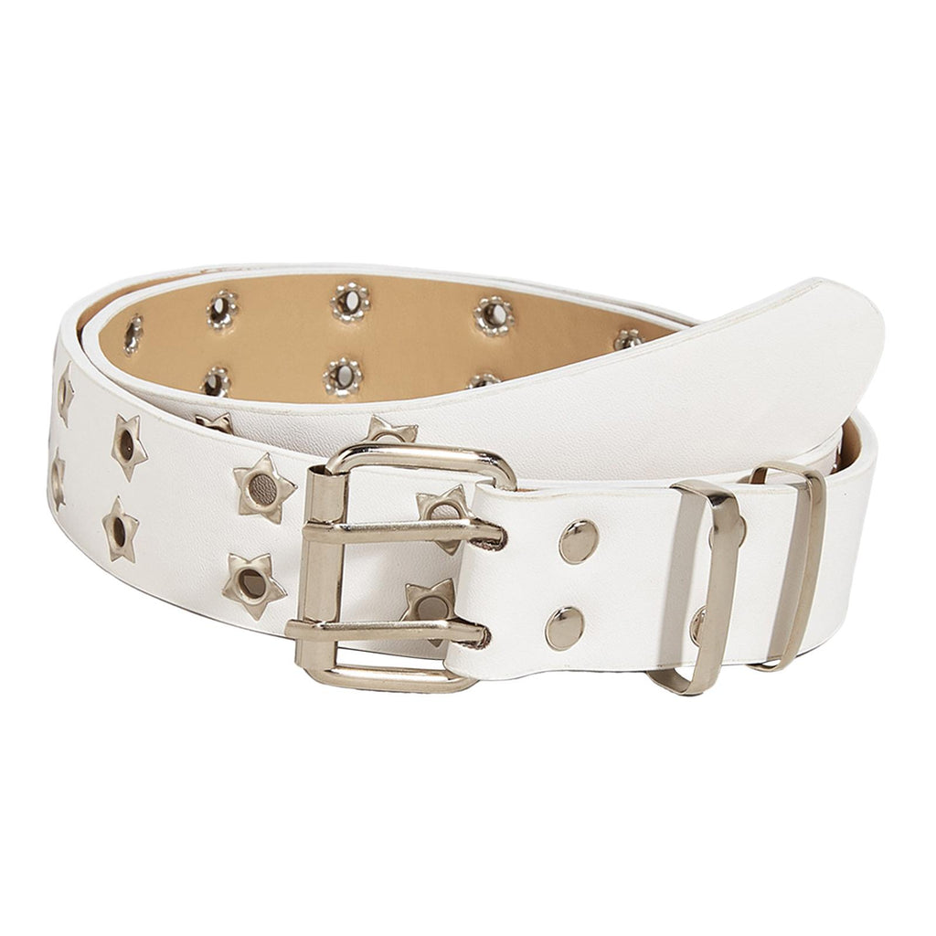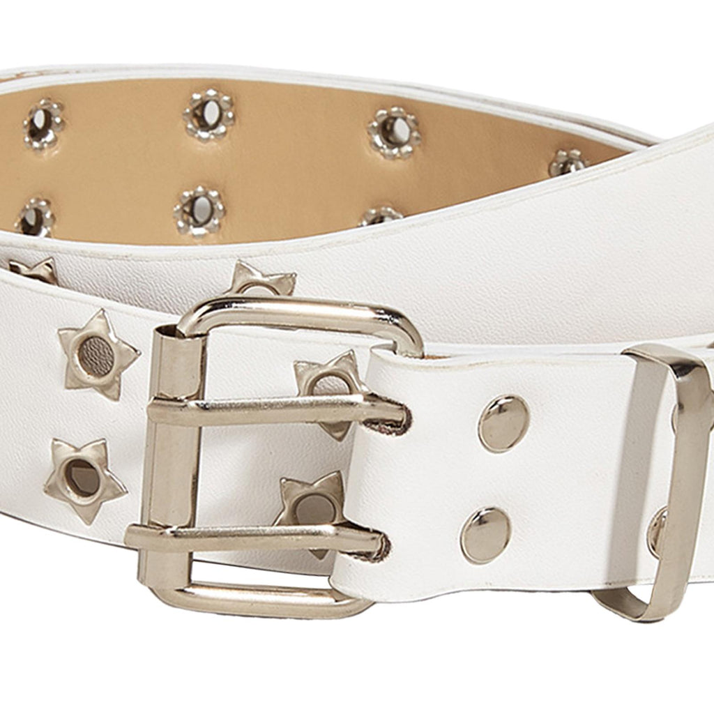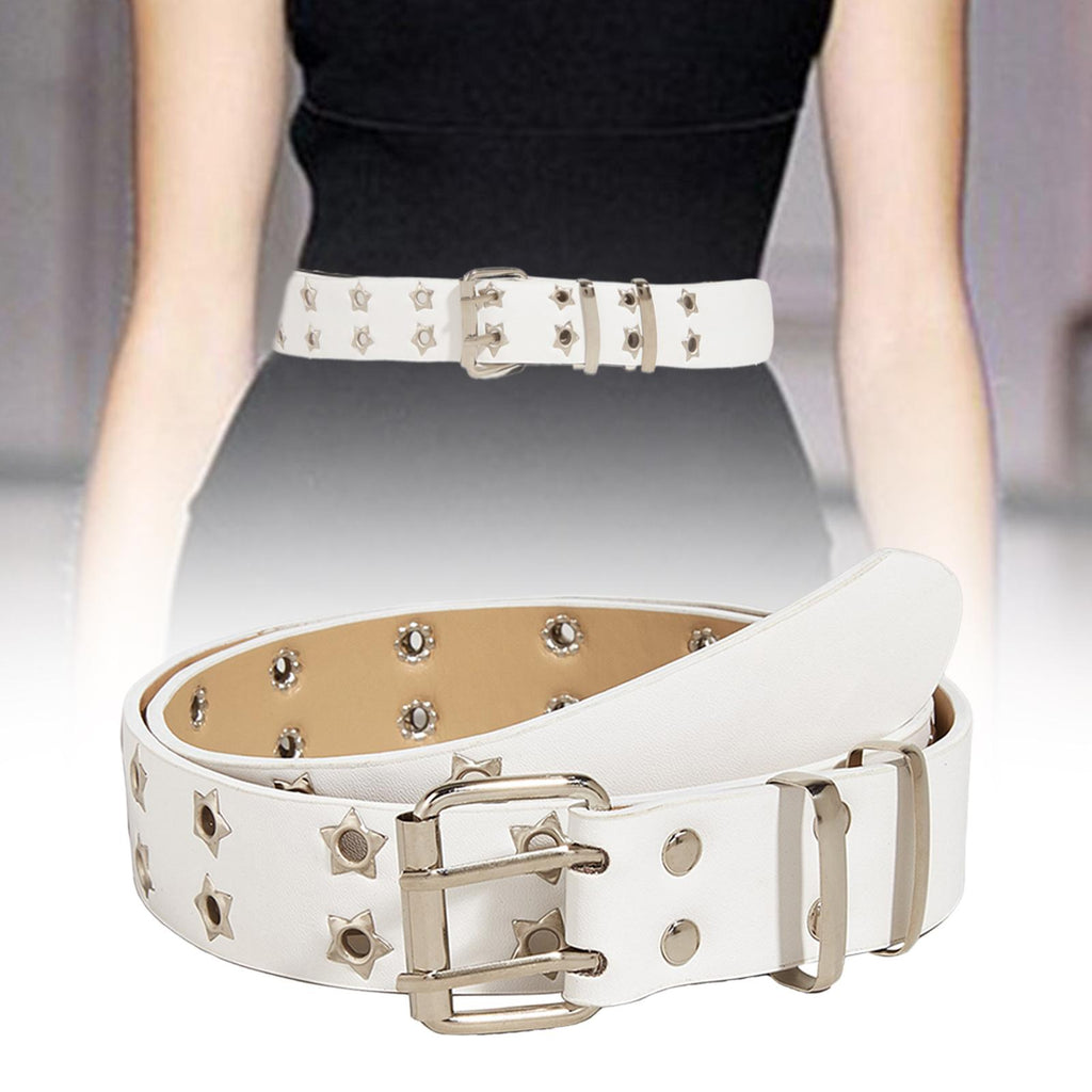 Maxbell Women Leather Belt Decorative Waistband Punk Waist Belt for Jean Pant White