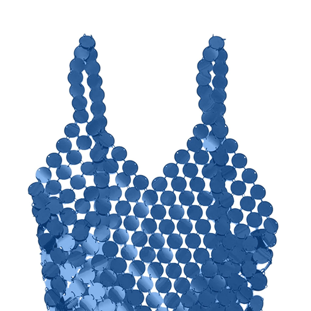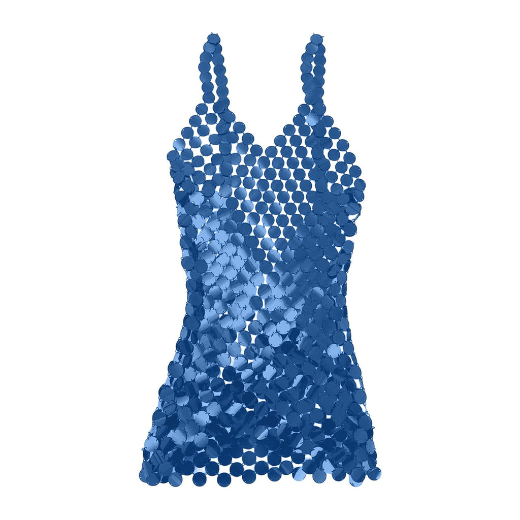 Maxbell Women Sequined Spaghetti Straps Dress Sequin Decorative Open Back for Club Blue