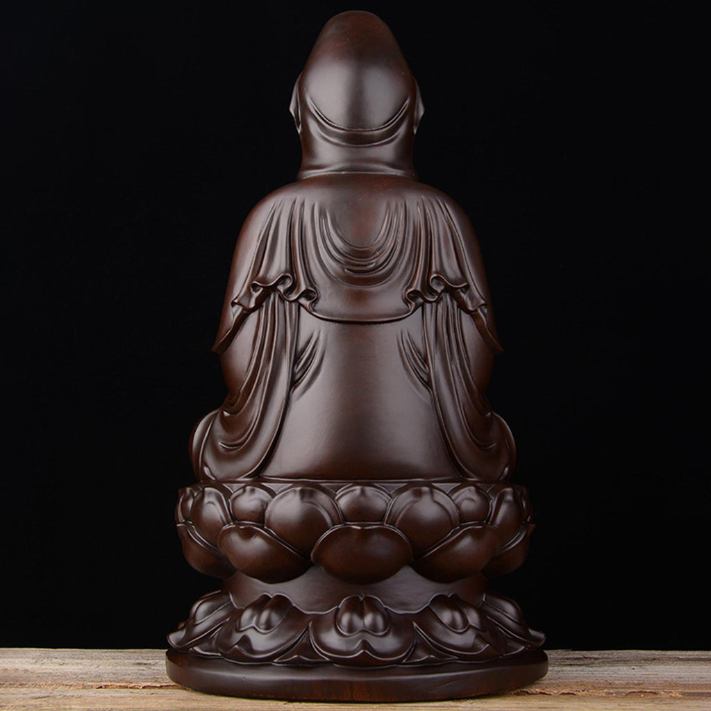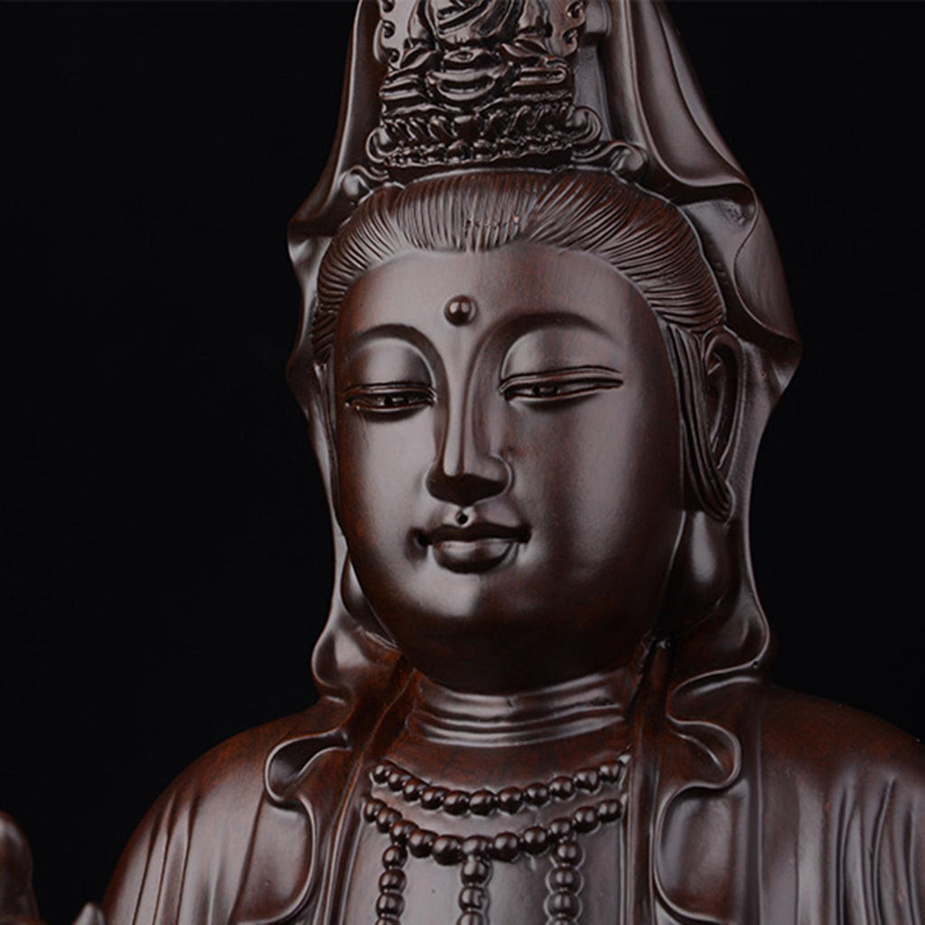 Maxbell Maxbell Wood Guan Yin Statue Worship Figurine Feng Shui for Desktop Home Decor Black