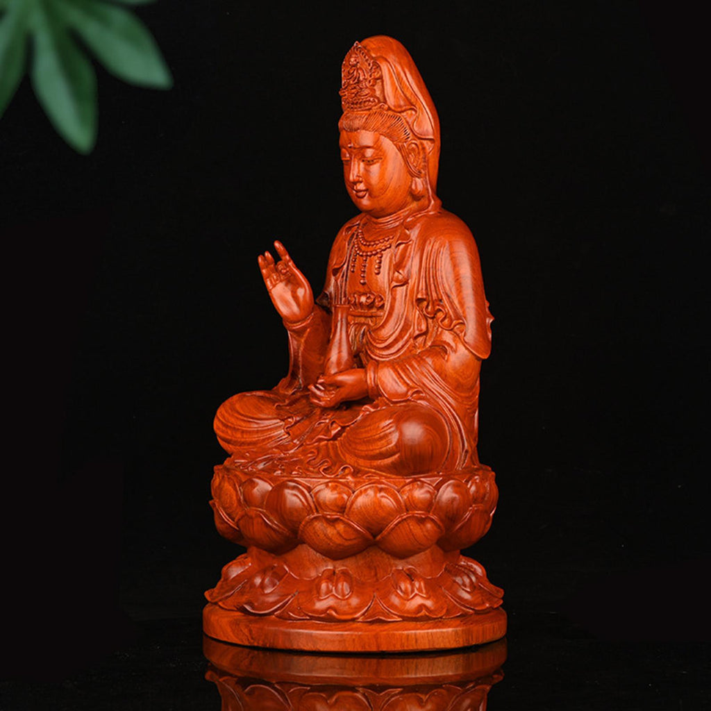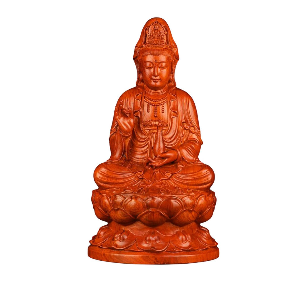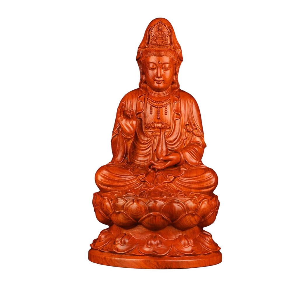 Maxbell Maxbell Wood Guan Yin Statue Worship Figurine Feng Shui for Desktop Home Decor Brown