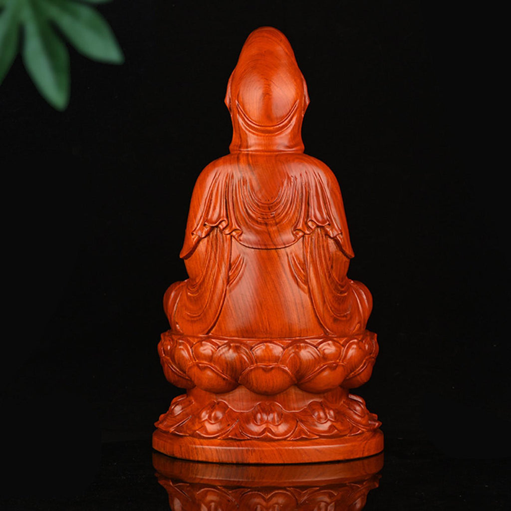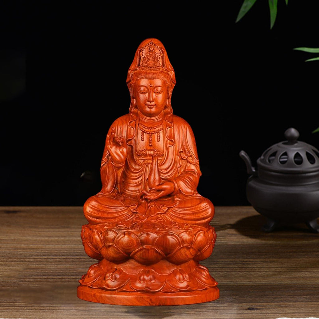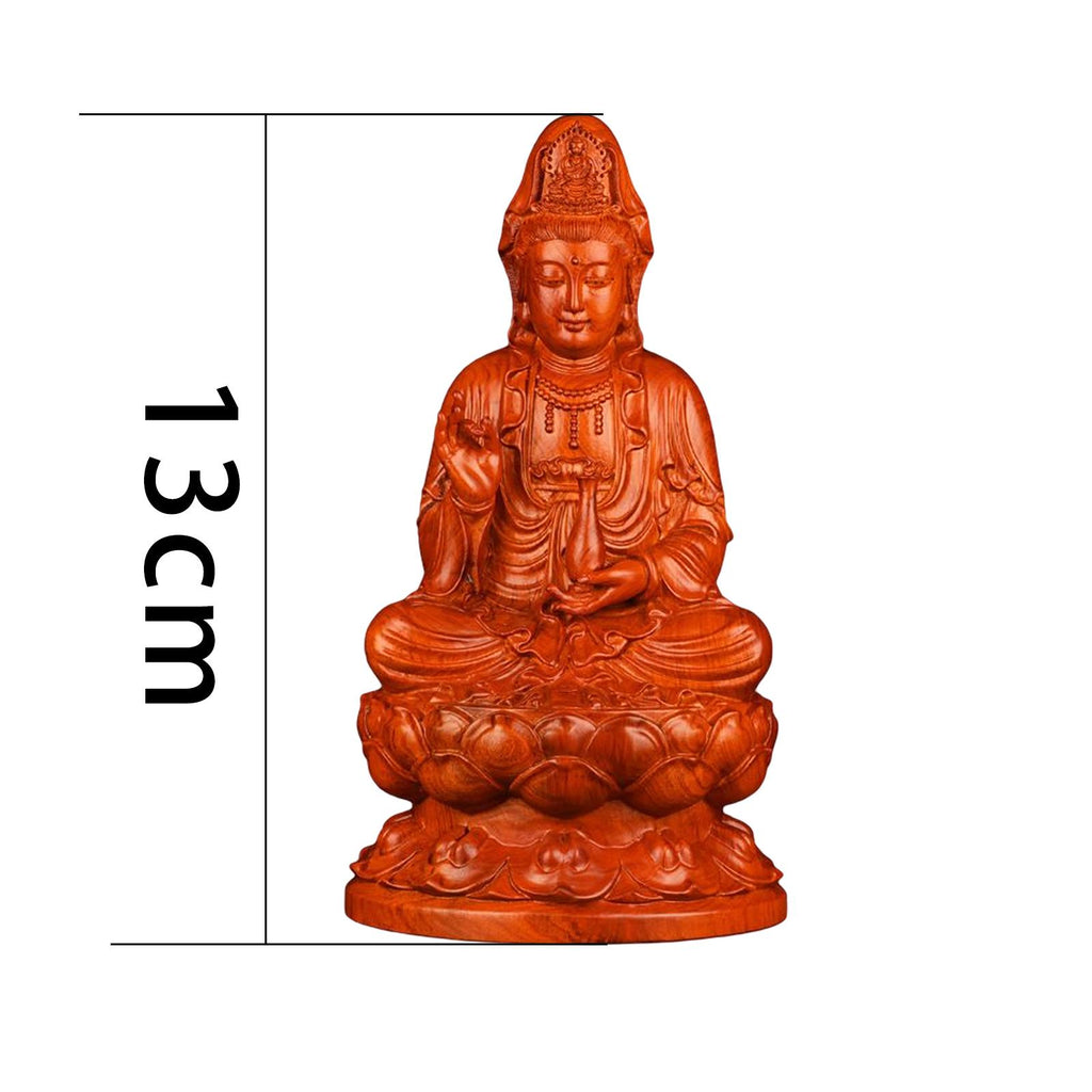 Maxbell Maxbell Wood Guan Yin Statue Worship Figurine Feng Shui for Desktop Home Decor Brown