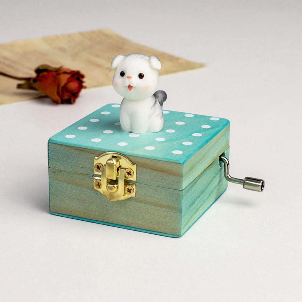 Maxbell Wooden Hand Crank Music Box for Women Halloween Gifts Party Decoration Gray Dog