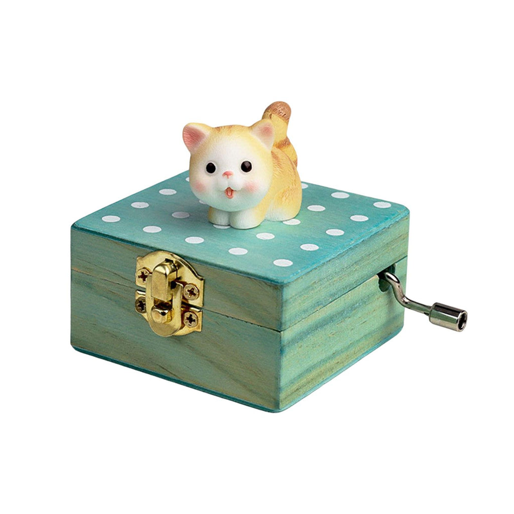 Maxbell Wooden Hand Crank Music Box for Women Halloween Gifts Party Decoration Yellow Cat