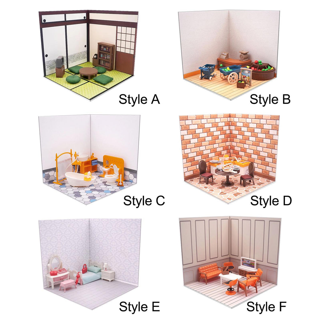 Maxbell 1/12 Backdrop Scene Model with Furniture for Action Figures Dolls Collection Style A