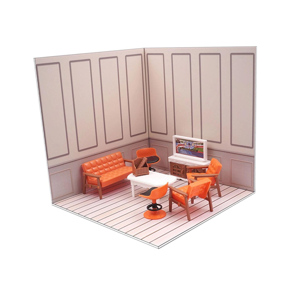 【Model Backdrop Display】: 1/12 scale backdrop organizer scene display action figure showcase background with furniture. Easily assembly.