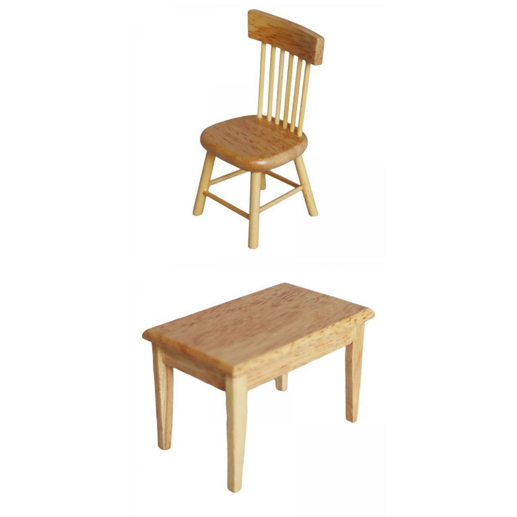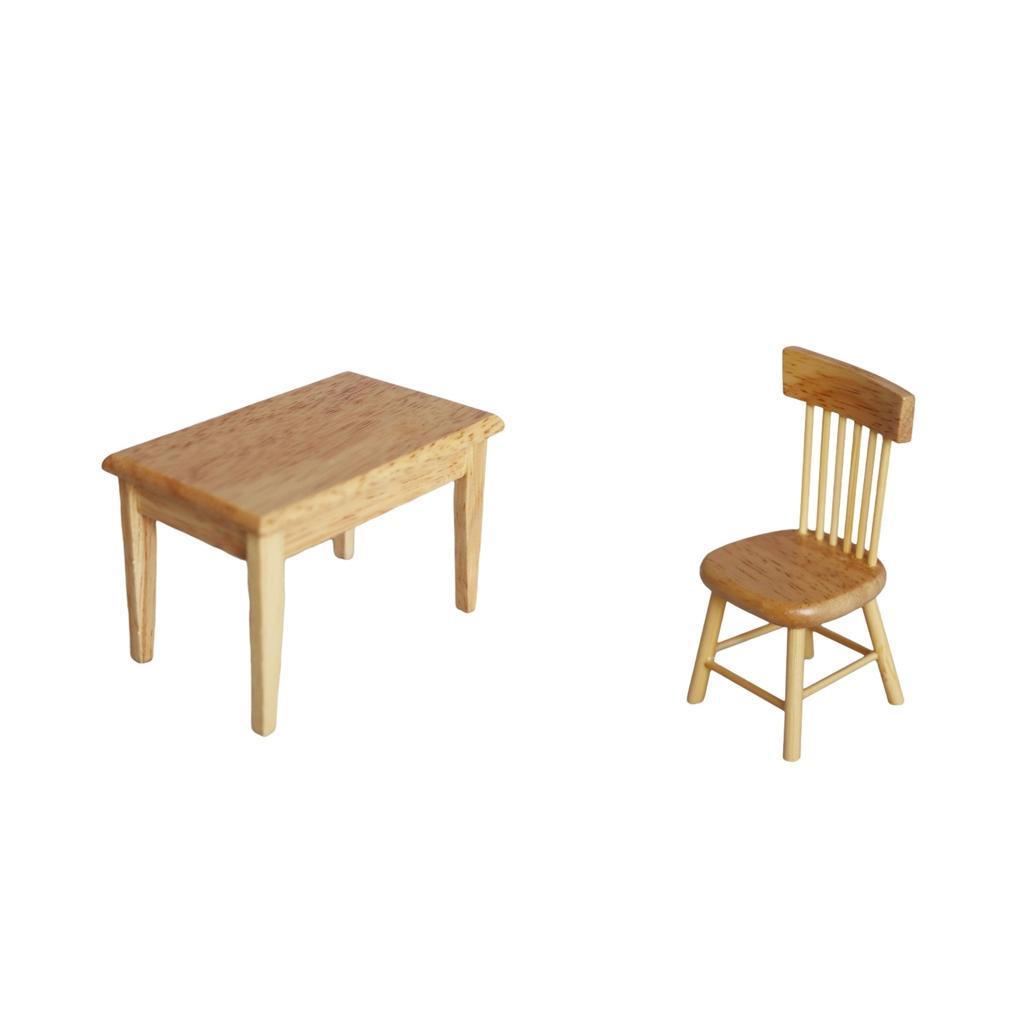 Wooden dining table chair furniture miniature for dollhouse accessories.