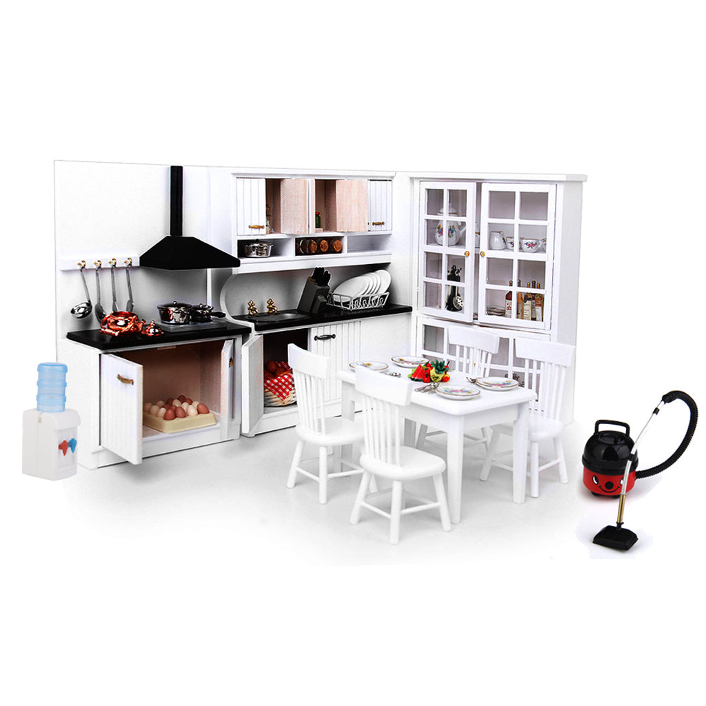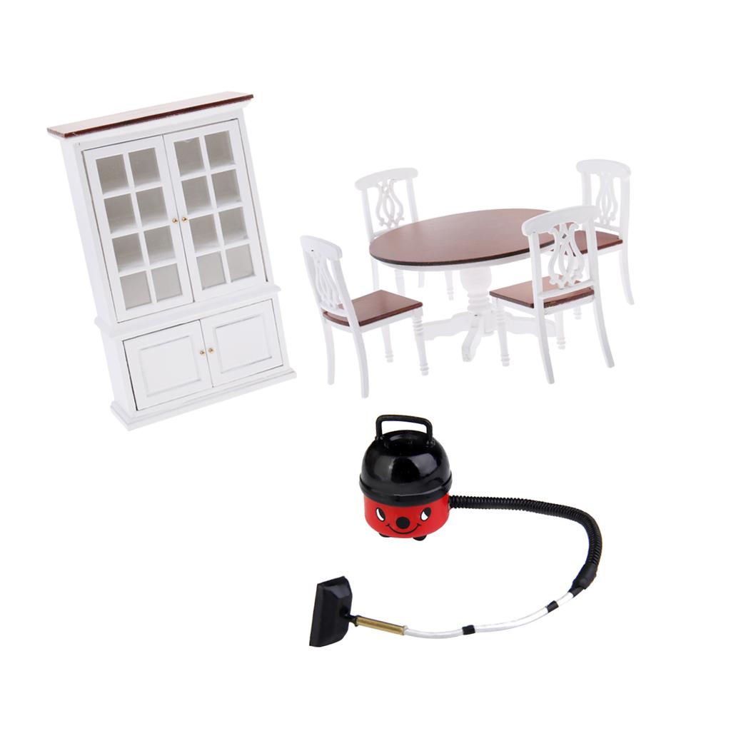 Maxbell 1/12 Dollhouse Kitchen Furniture Table Chair Cupboard Set & Vacuum Cleaner