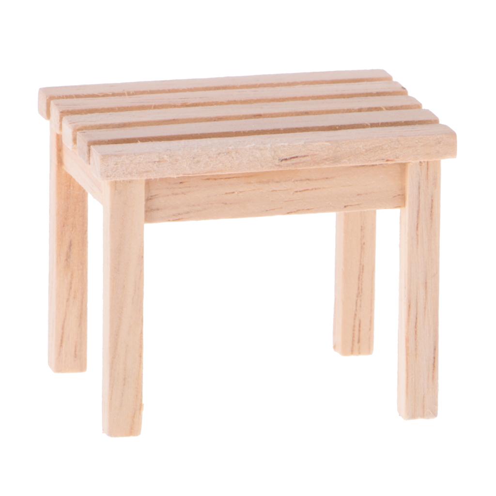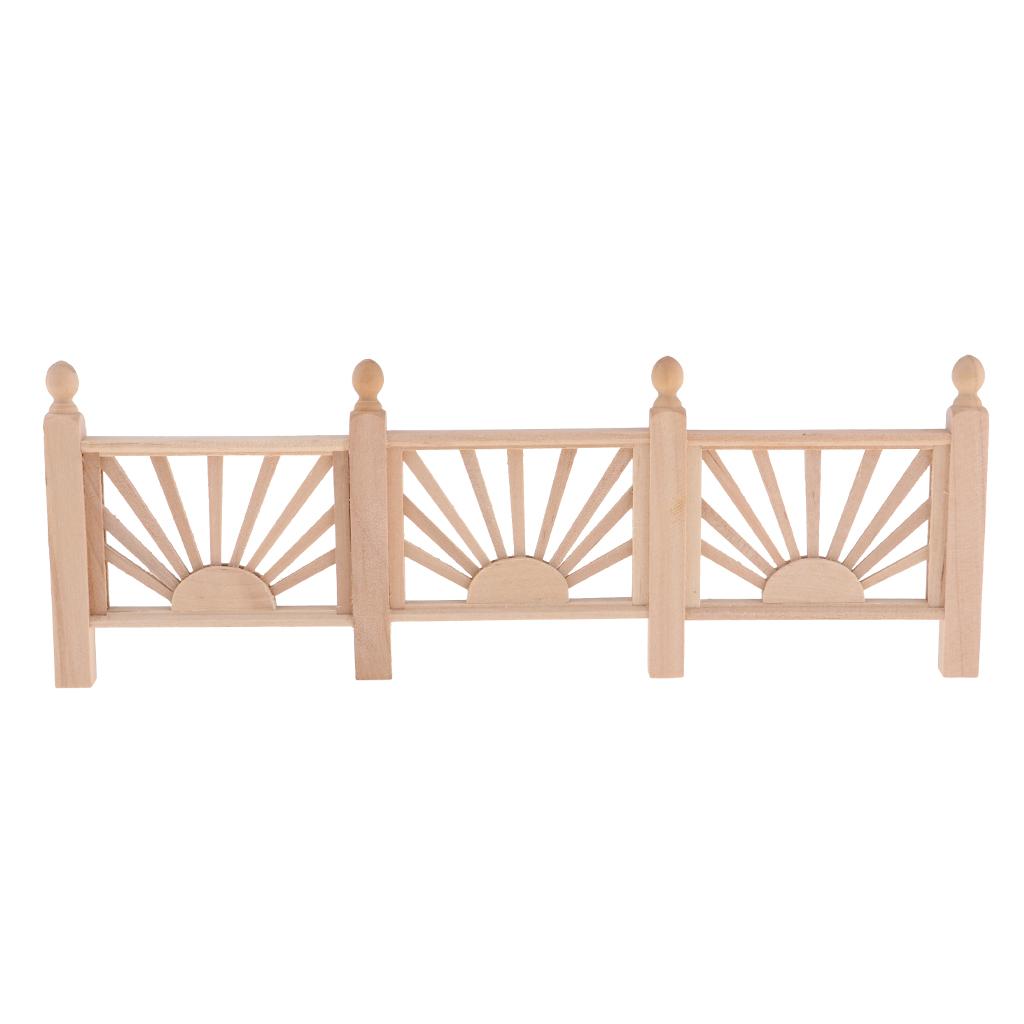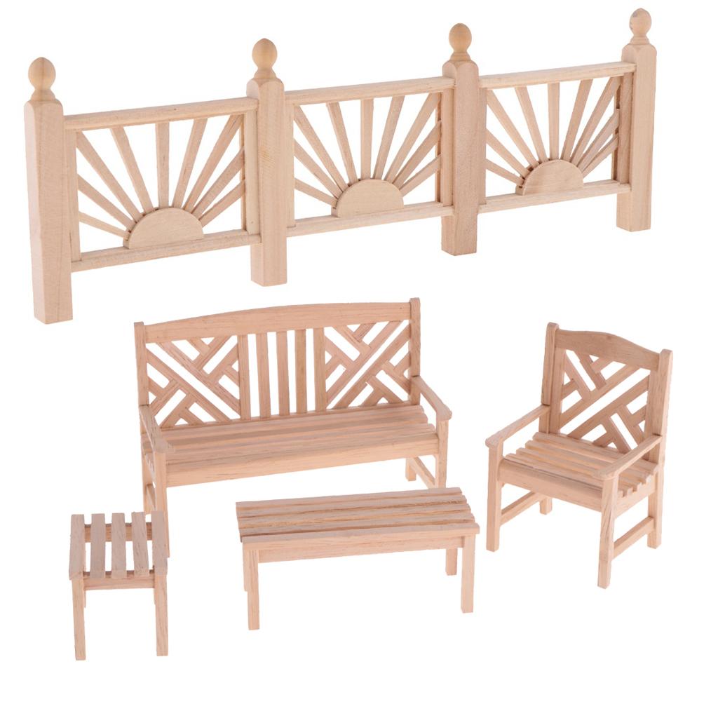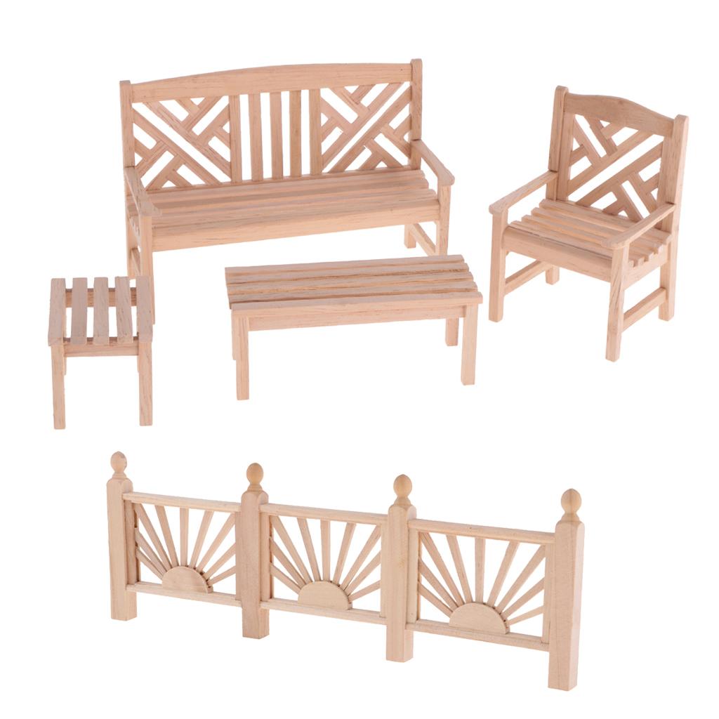 1/12 Scale Miniature Wood Rail Fence/Barrier & End Table Bench Chair Set Unpainted Furniture for Dollhouse Room Accessories Garden Decor