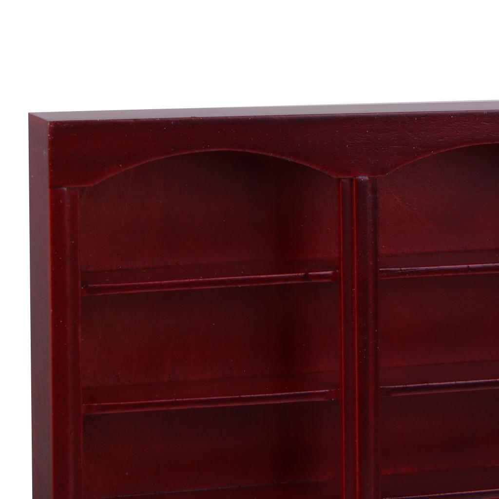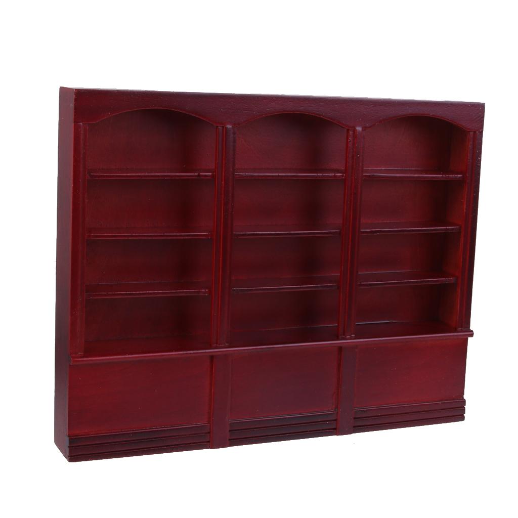 Maxbell 1/12 Dollhouse Miniature Furniture Grand Wooden Bookcase Cabinet - Dark Red