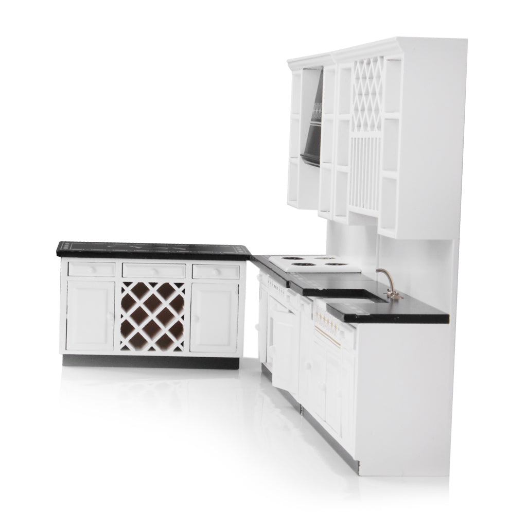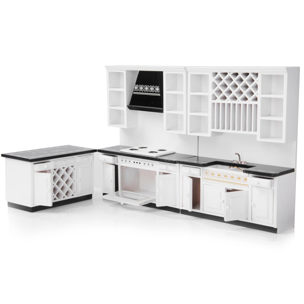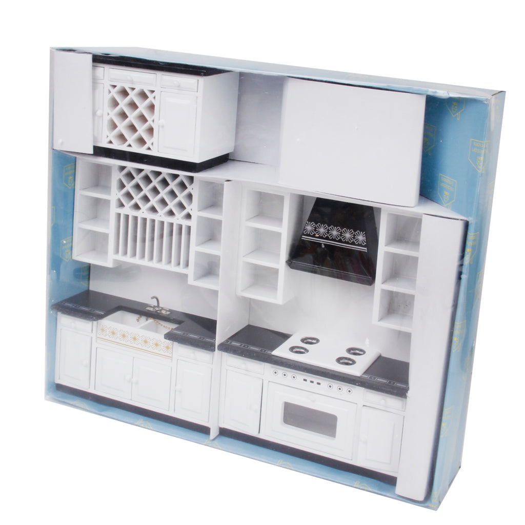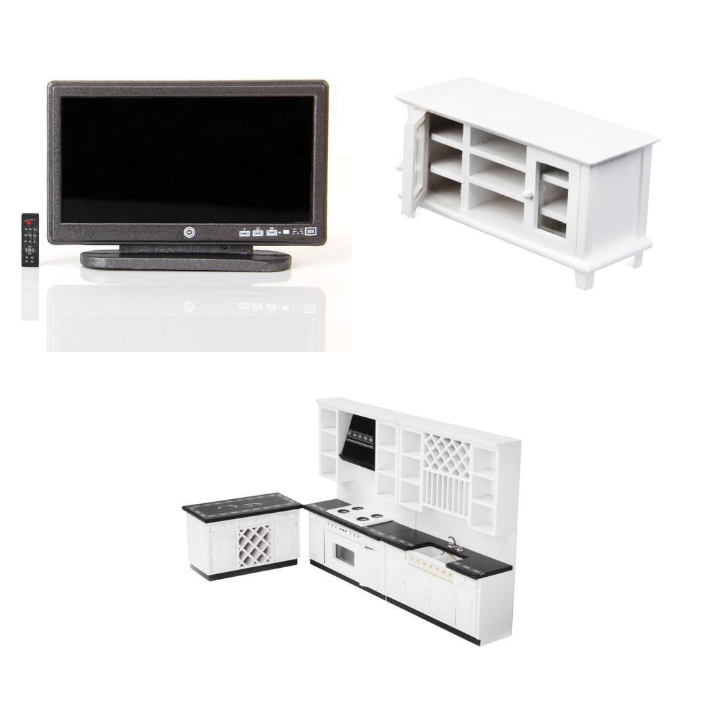 European Style Dollhouse Miniature Furniture Kit - Luxury Cabinet Set(Sink Cabinet + Stove Cabinet + Small Cabinet) & Television & TV Cabinet