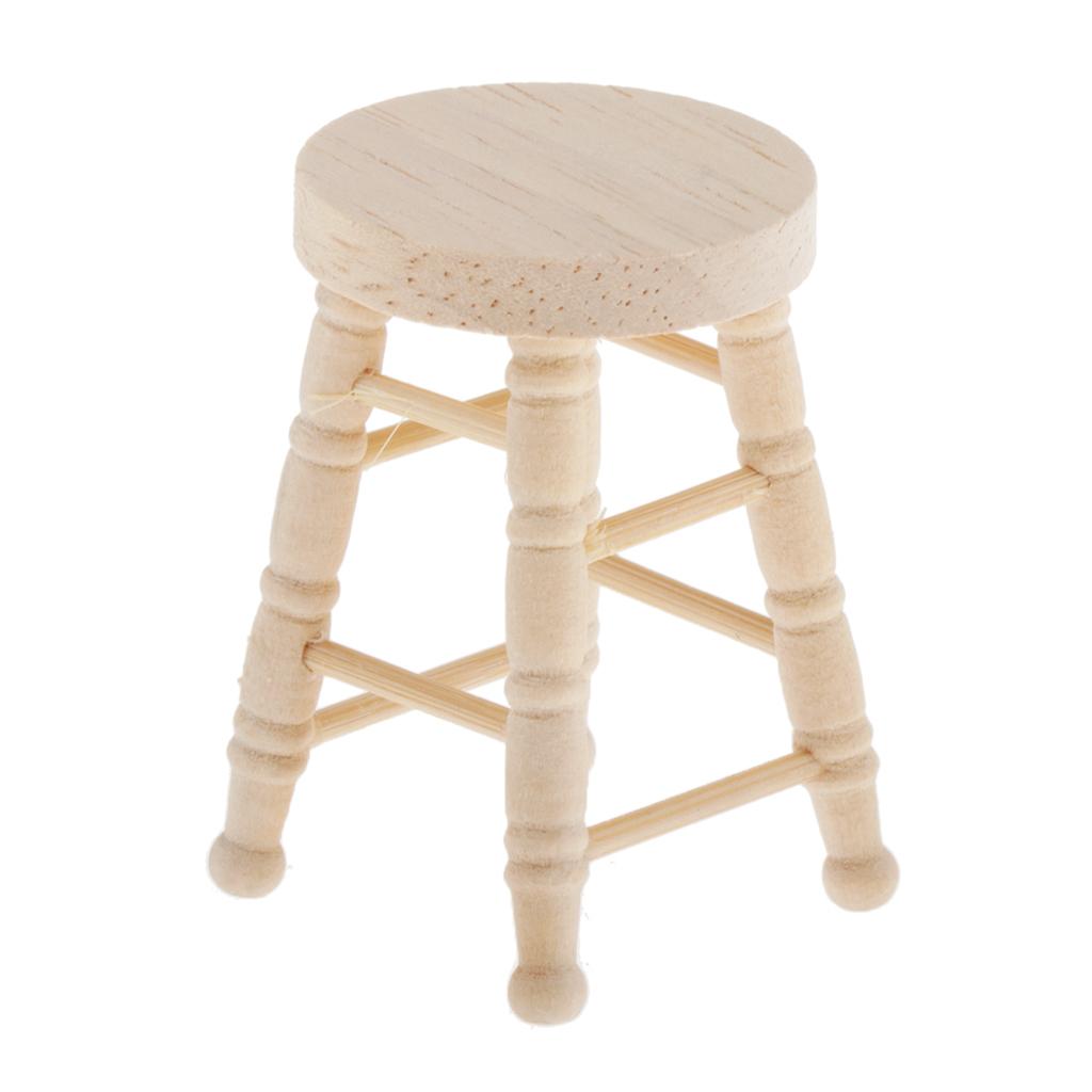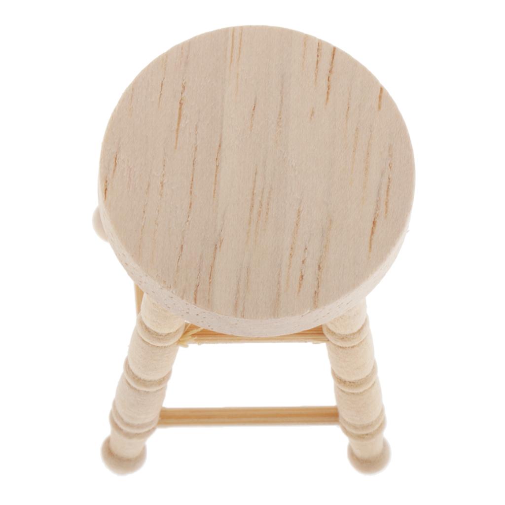 Maxbell 1:12 Dollhouse Miniature Furniture Wood Round Stool Barstool Footstool