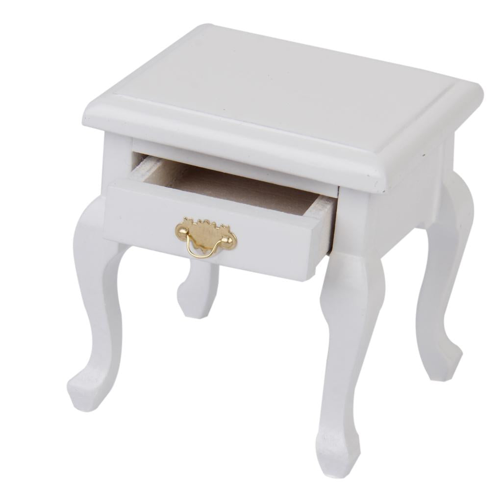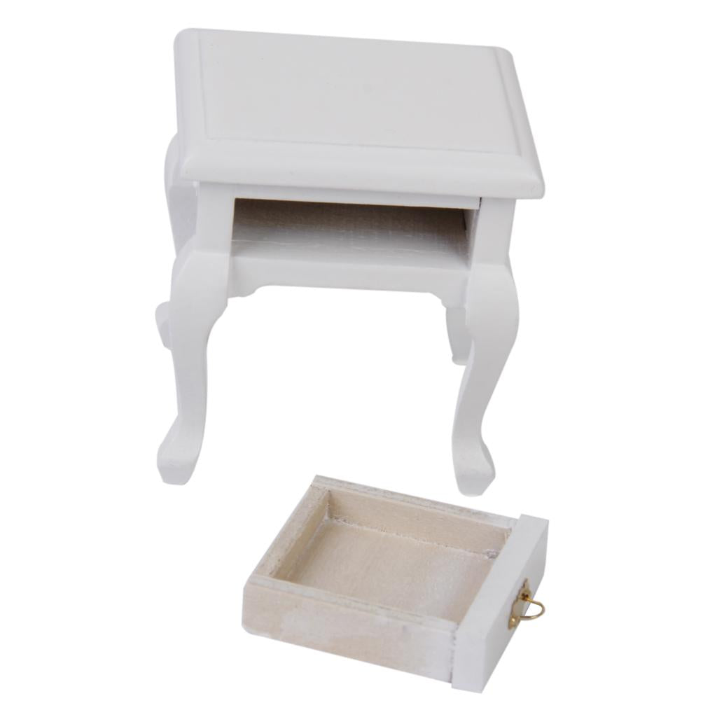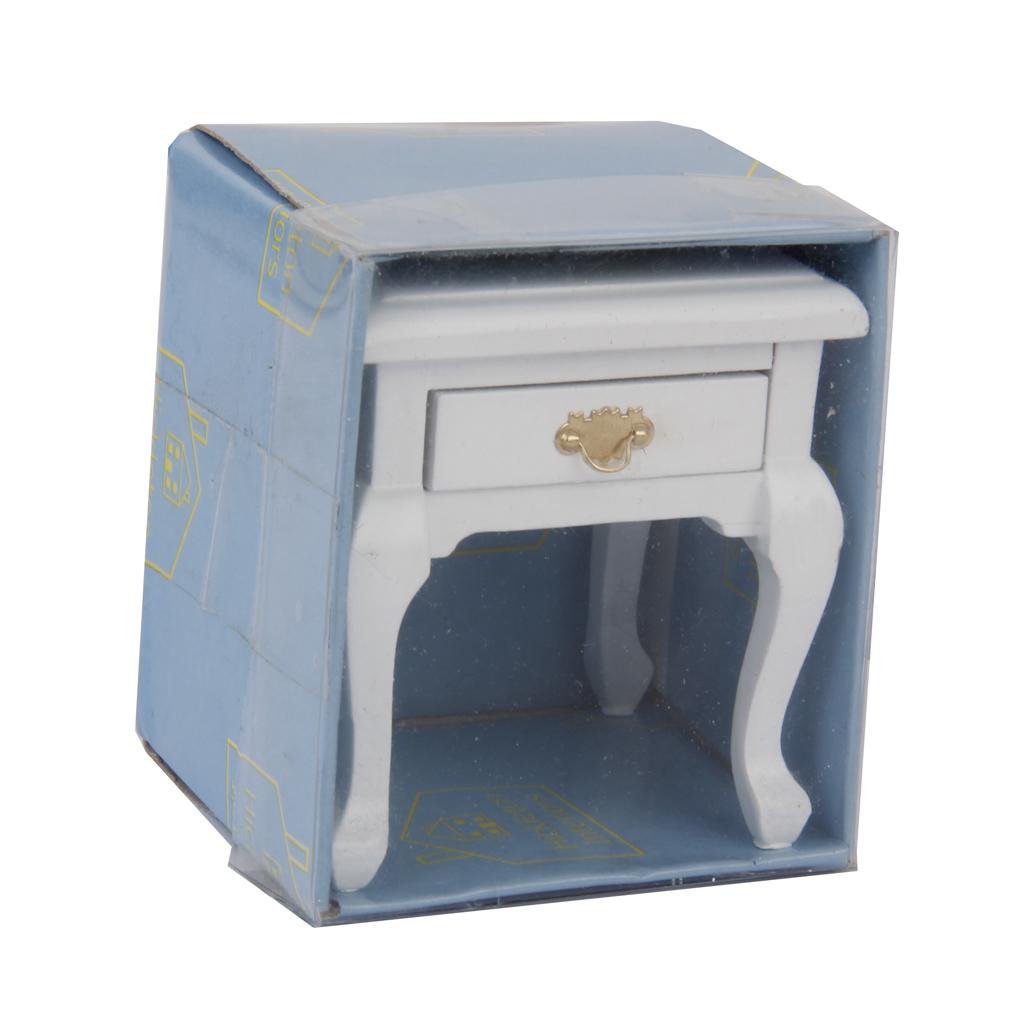 Maxbell 1/12 Dollhouse Miniature Furniture Wooden Bedside Cabinet White