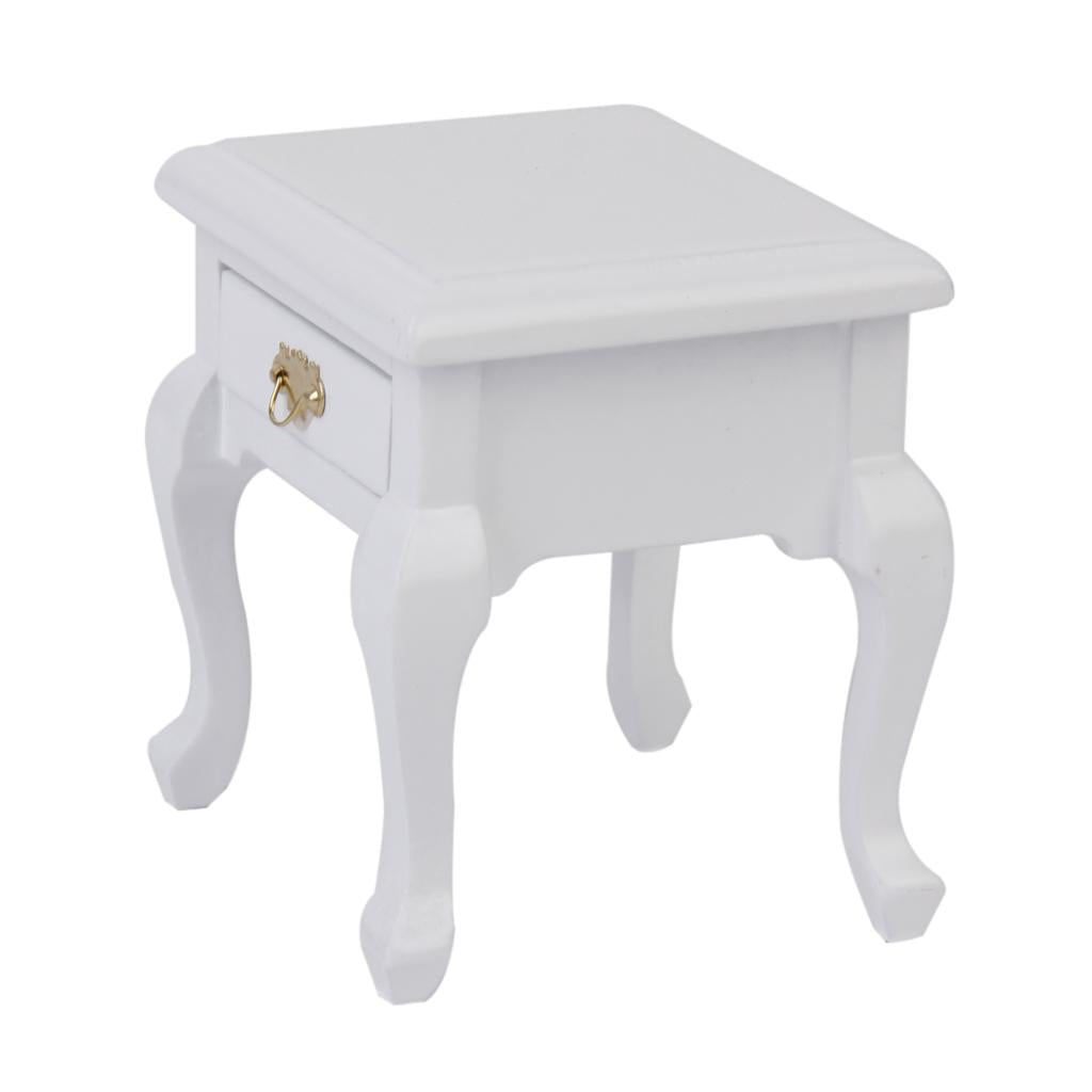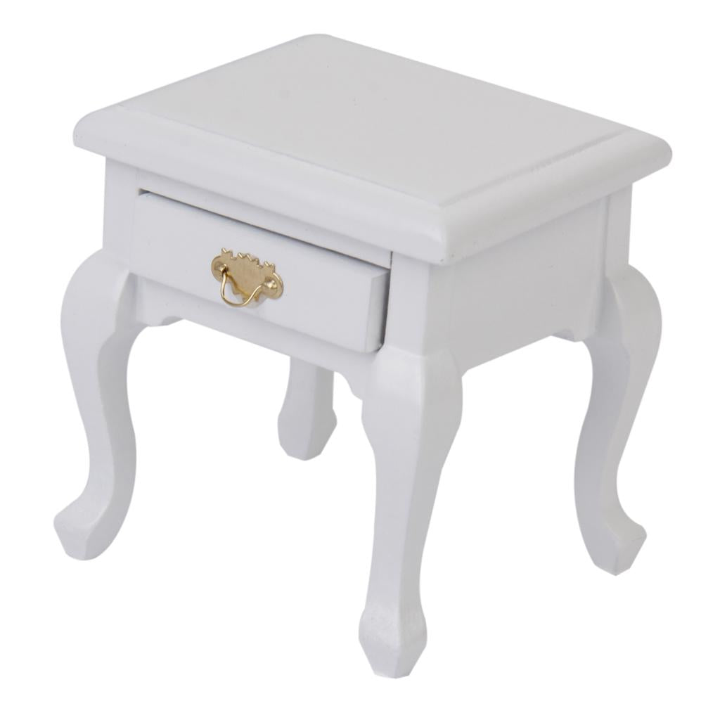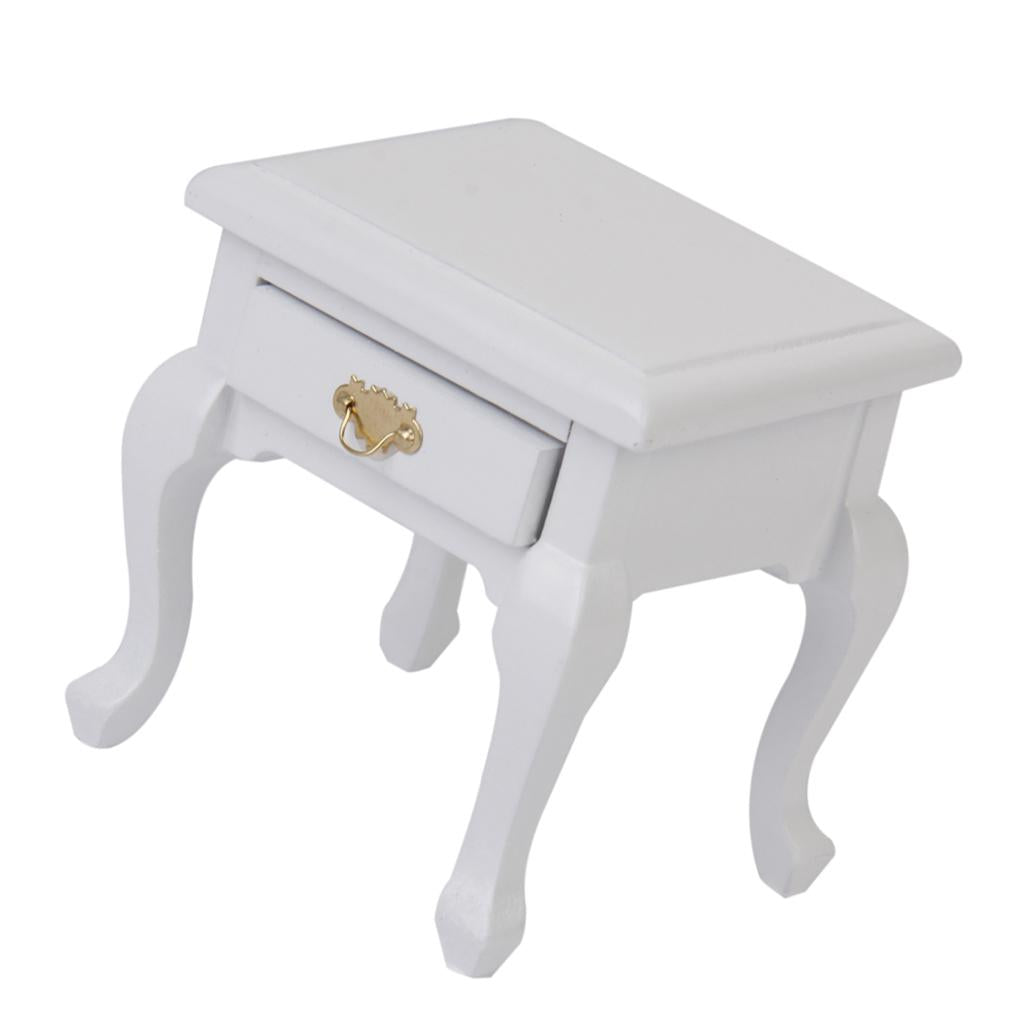Maxbell 1/12 Dollhouse Miniature Furniture Wooden Bedside Cabinet White