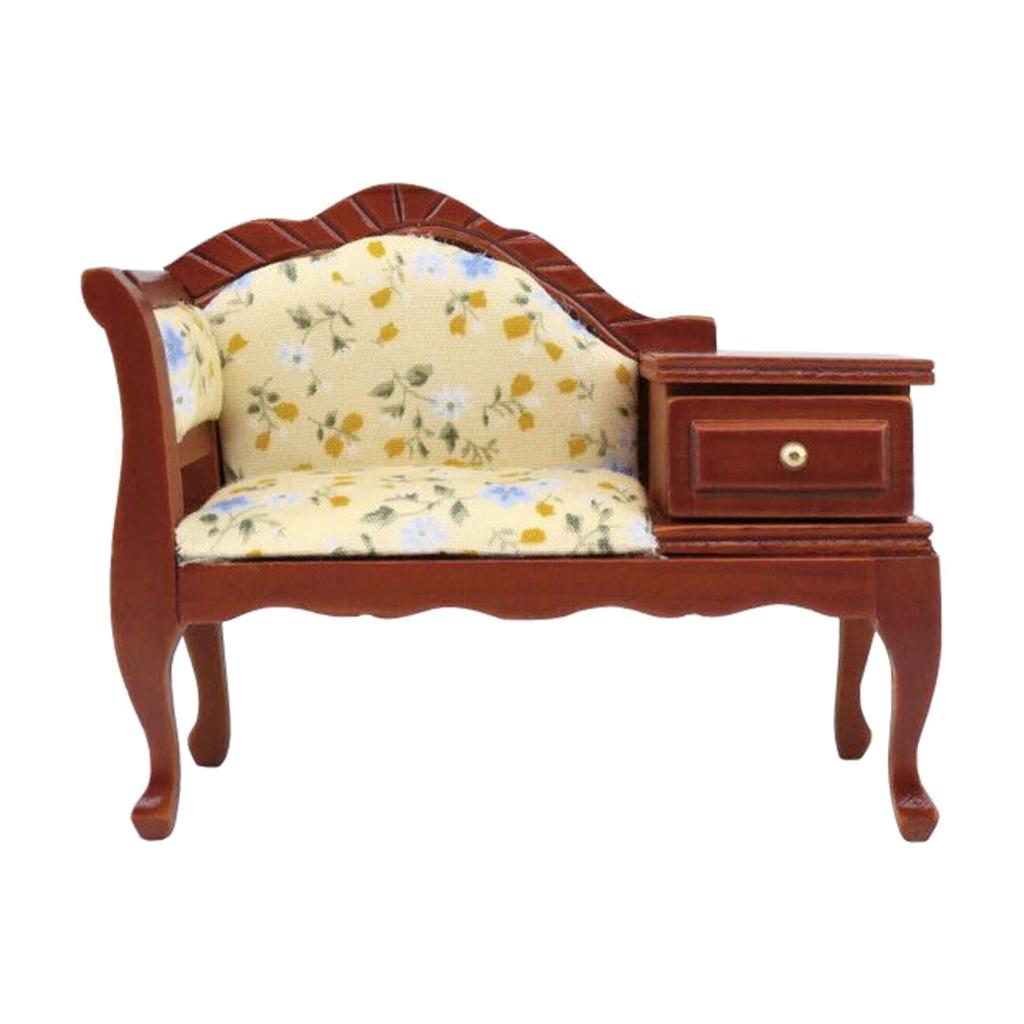 Maxbell 1/12 Dollhouse Miniature Furniture Wooden Floral Recliner w/Drawer