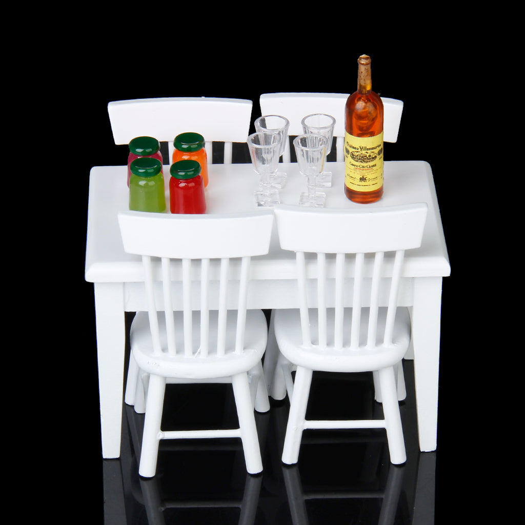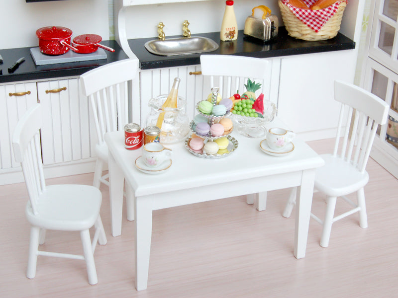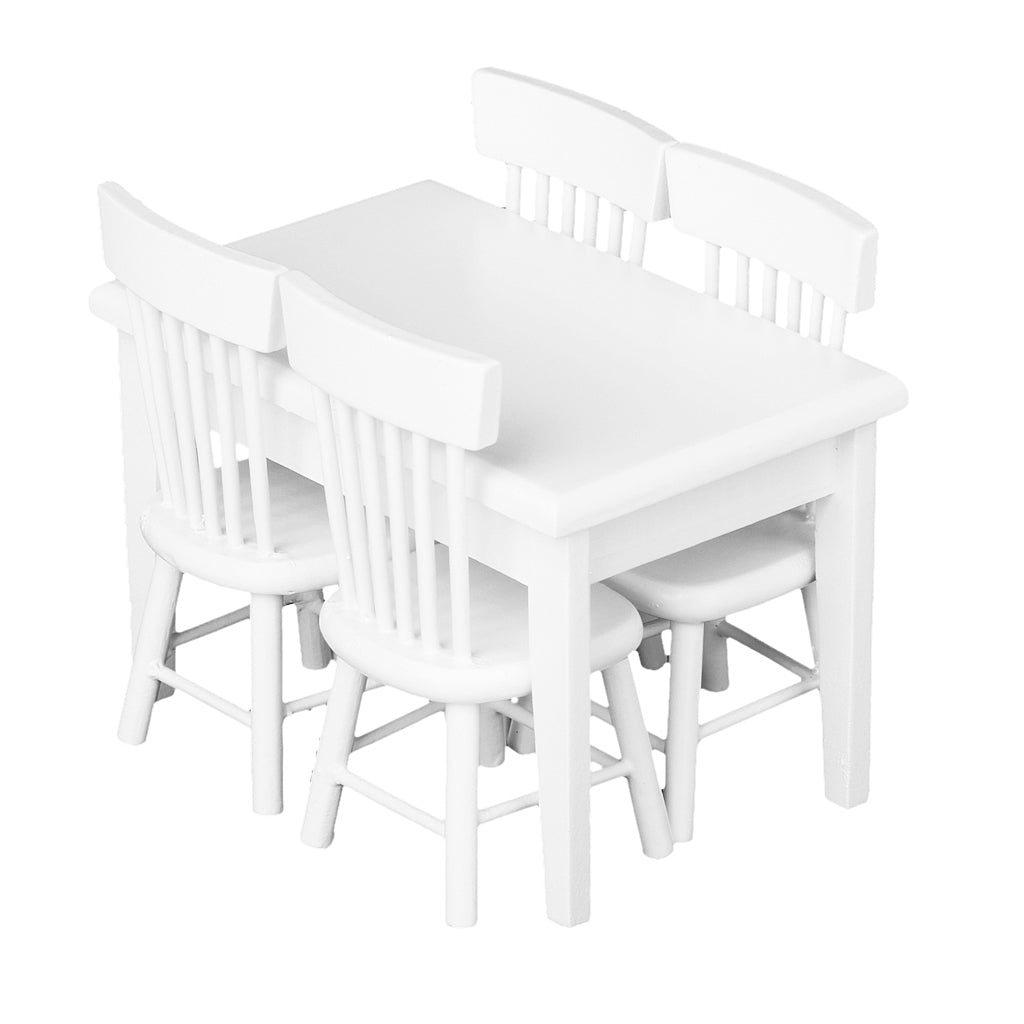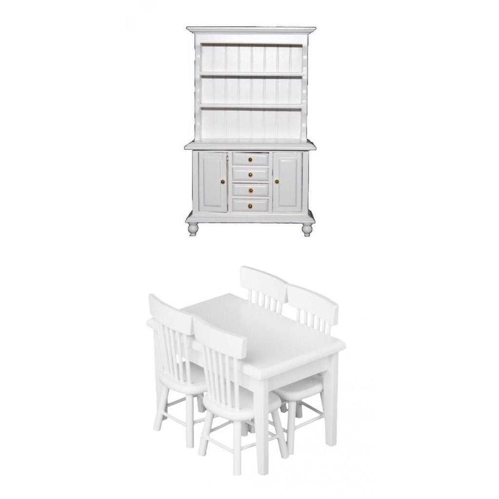 Maxbell 1:12 Dolls House White Wooden Dining Room Table 4 Chairs & Cupboard Cabinet