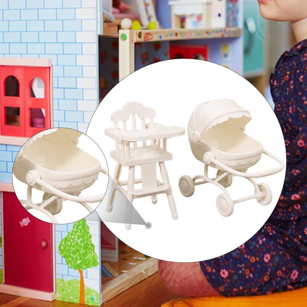 1/12 Highchair and Stroller Pretend Play Role Play Imaginative Photo Prop White