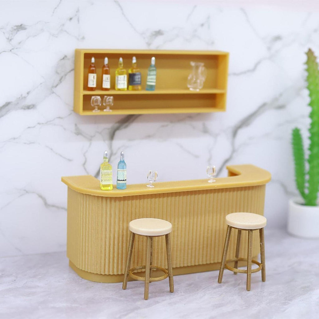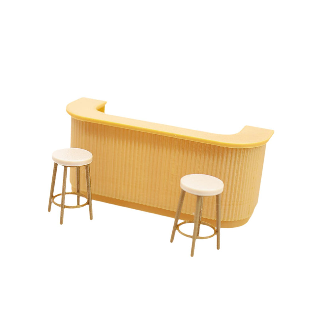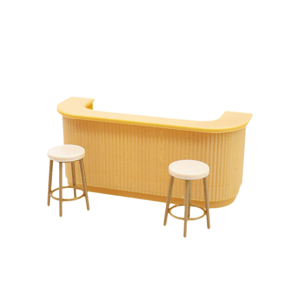 - 【Miniature Set】:The Furniture Toys includes a bar counter and two high stools, suitable for creating a realistic 1:12 dollhouse bar scene
