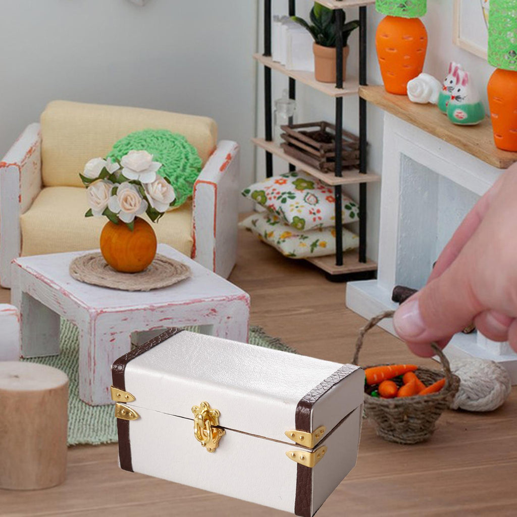 Maxbell 1/12 Scale Miniature Suitcase Wooden Furniture for Bedroom Living Room Decor White Brown