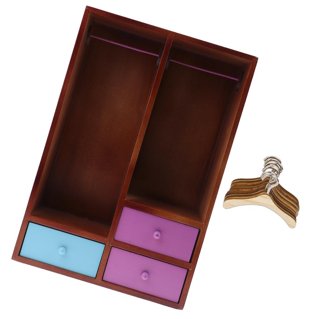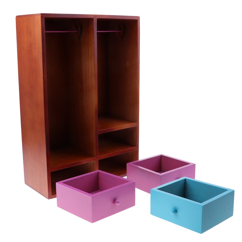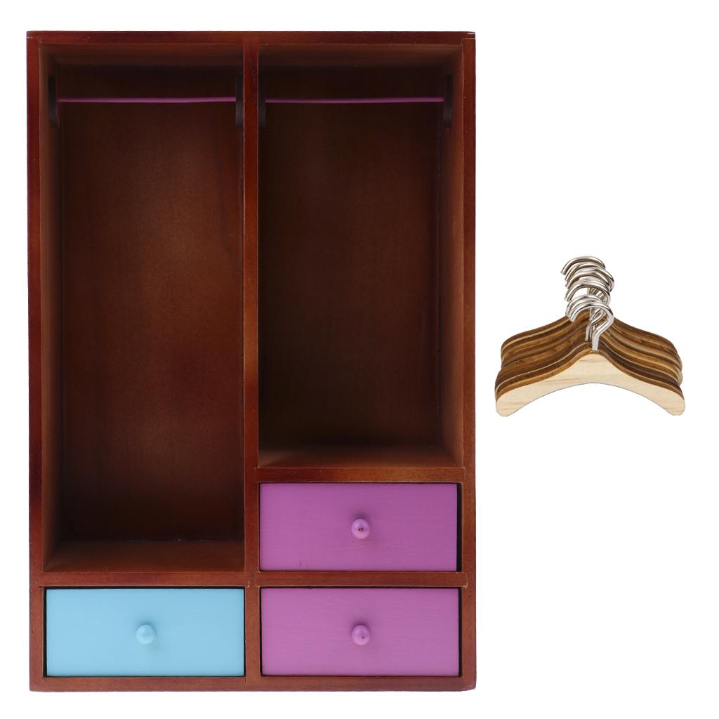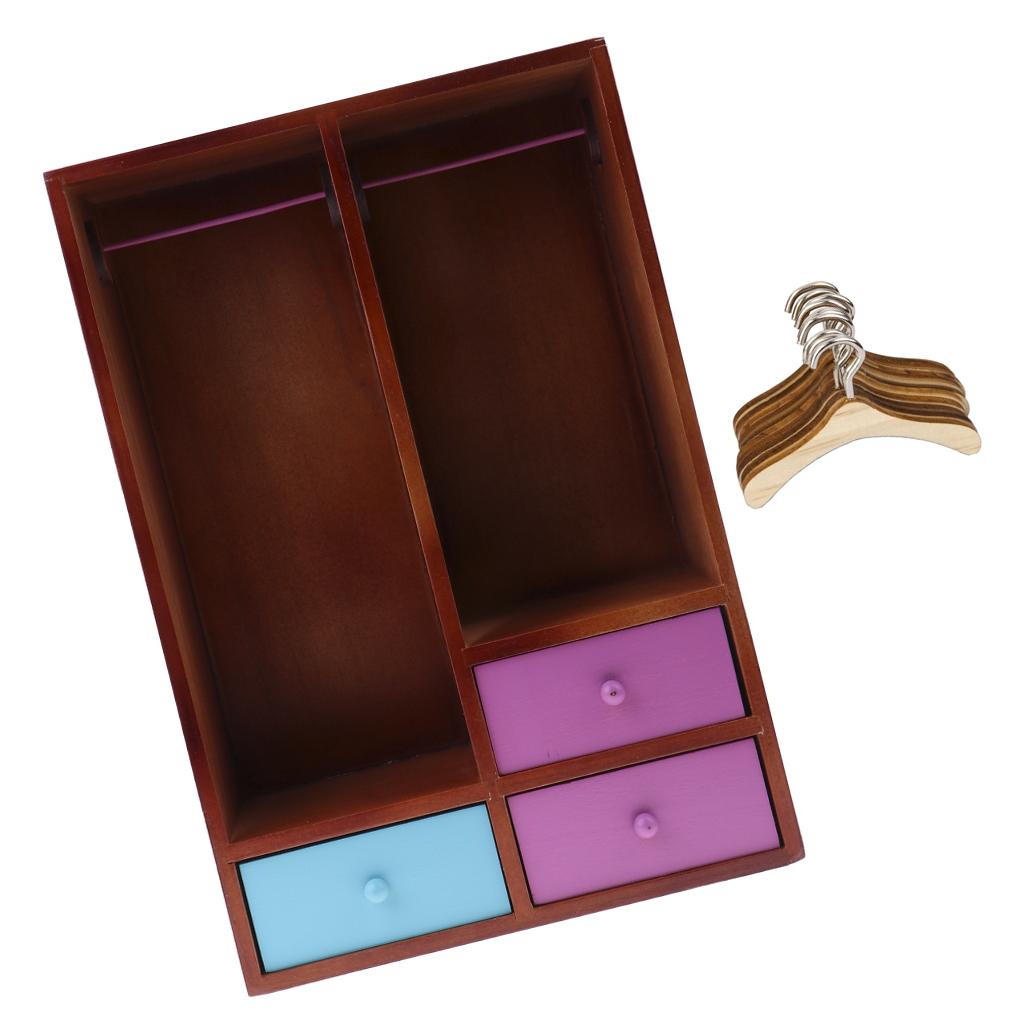 1/6 scale miniature wooden closet wardrobe with 3 openable drawers and wooden clothes hangers furniture model accessoriesWell designed and crafted; modern, stylish and fashionable