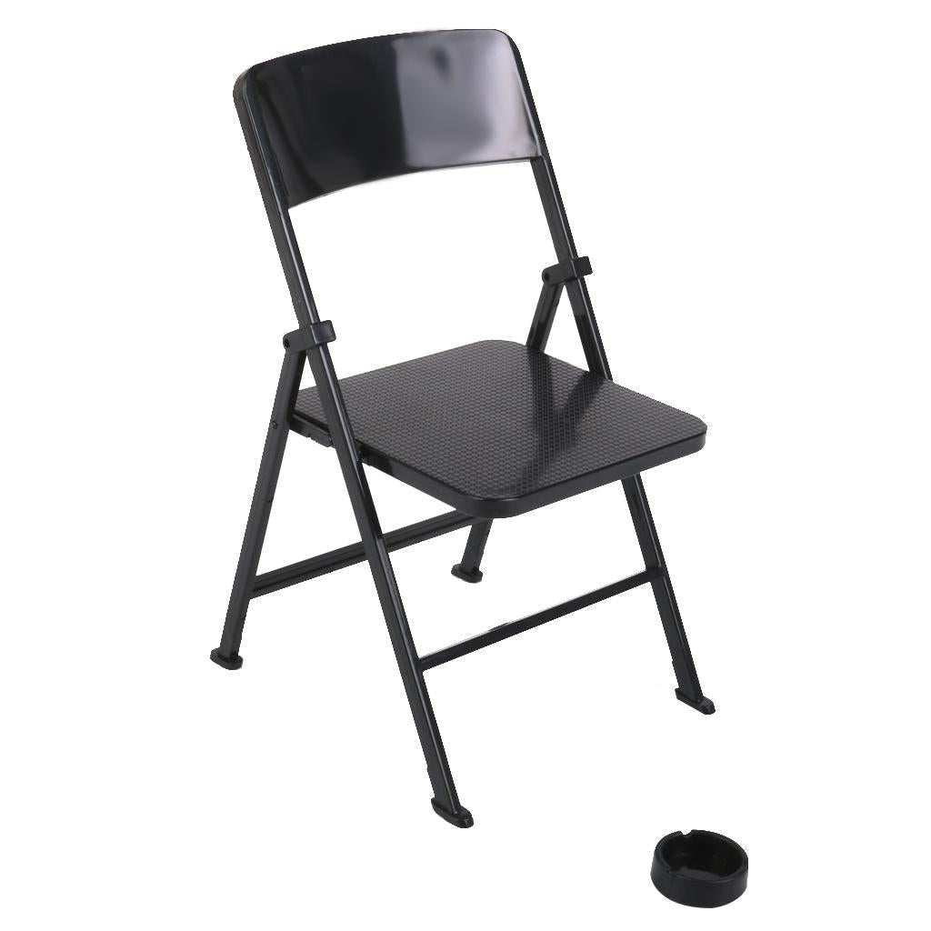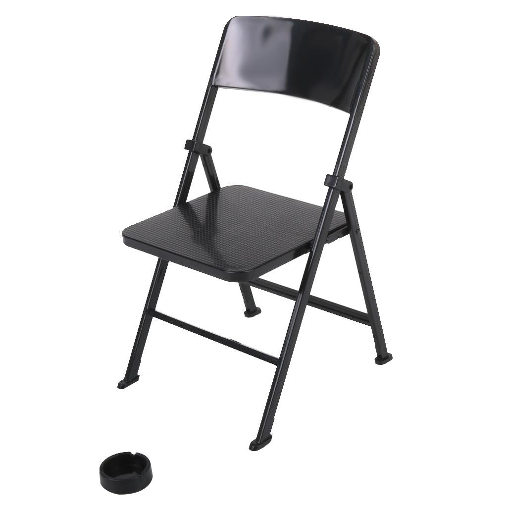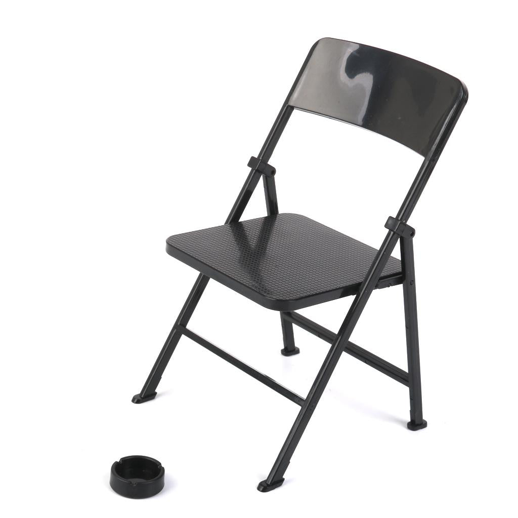 Maxbell 1/6 Scale Mini Folding Chair with Ashtray for Dolls Action Figures Black