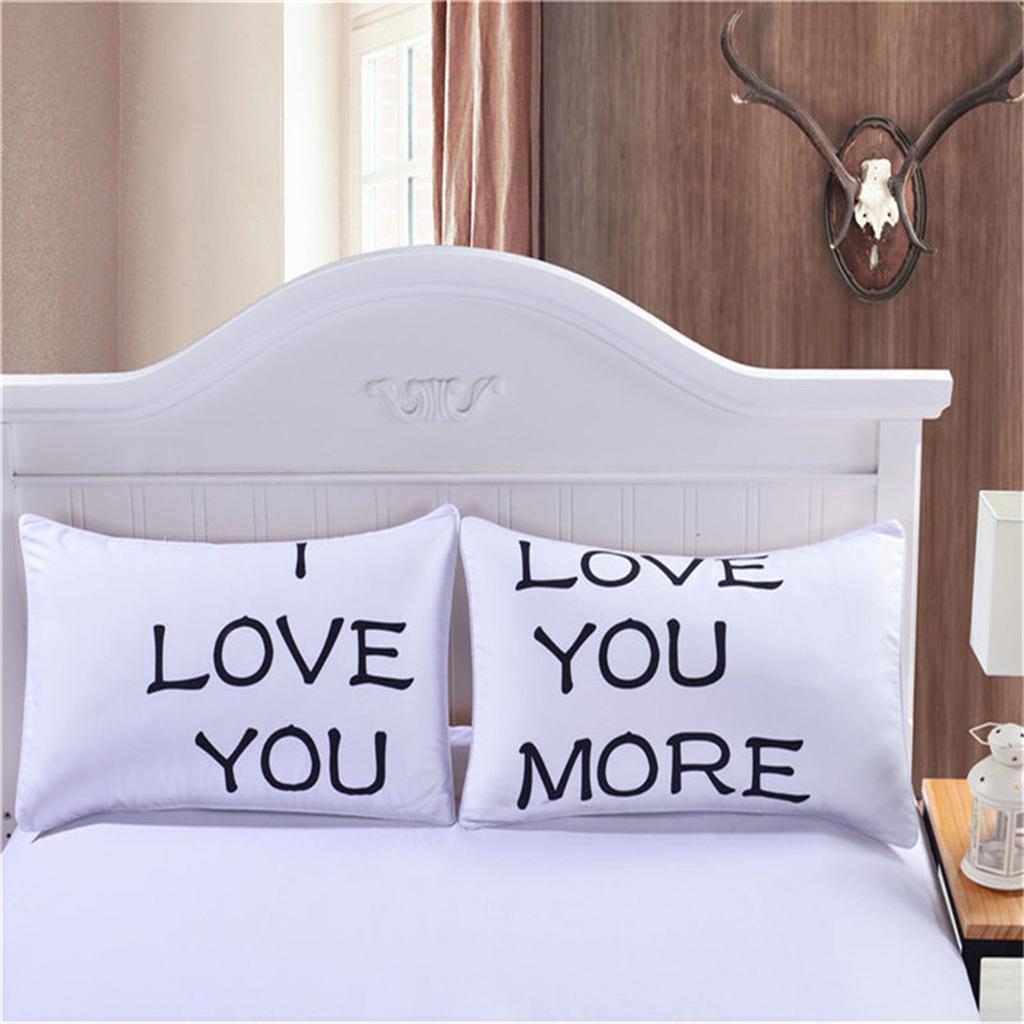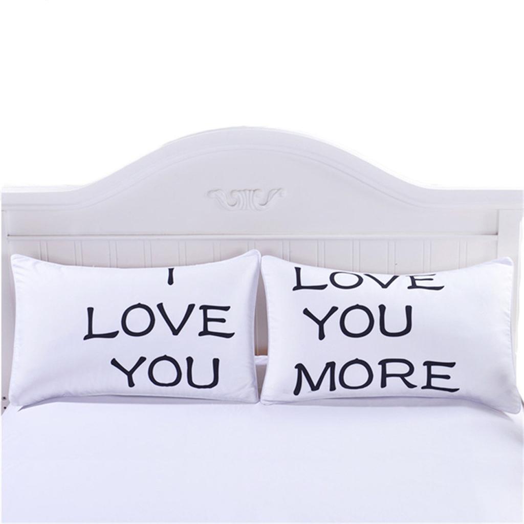 Maxbell 1 Pair Rectangle Couple Throw Pillow Cases Cushion Covers Home Bedroom Decor I love you-50cmx90cm