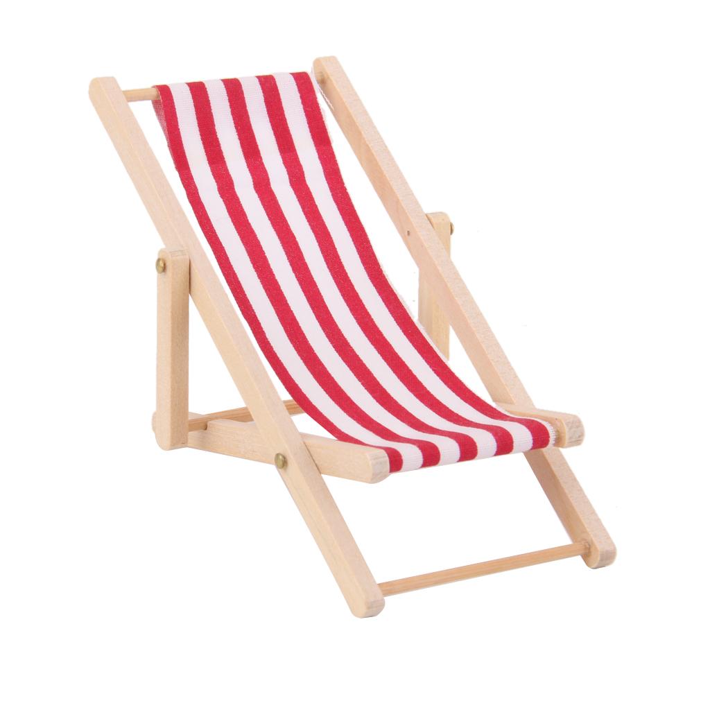 Maxbell 10xWooden Lounge Chair Red White Striped 1/12 Dollhouse Miniature Furniture