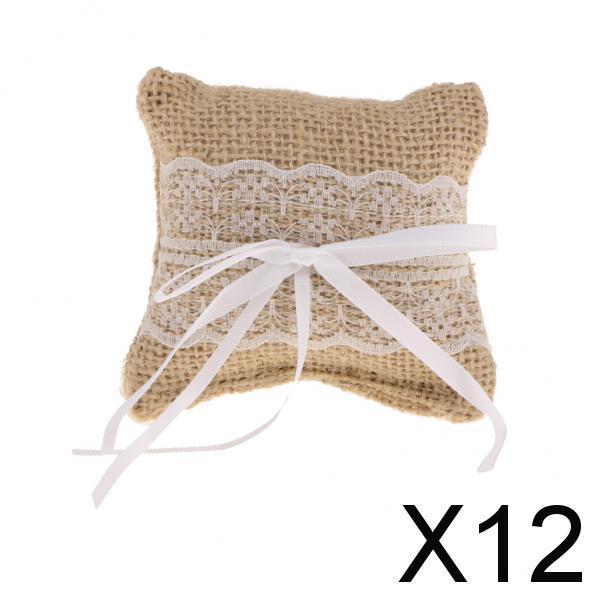 Maxbell 12xWedding Bridal Party Jute Burlap Ring Pillow Bow Lace Trim