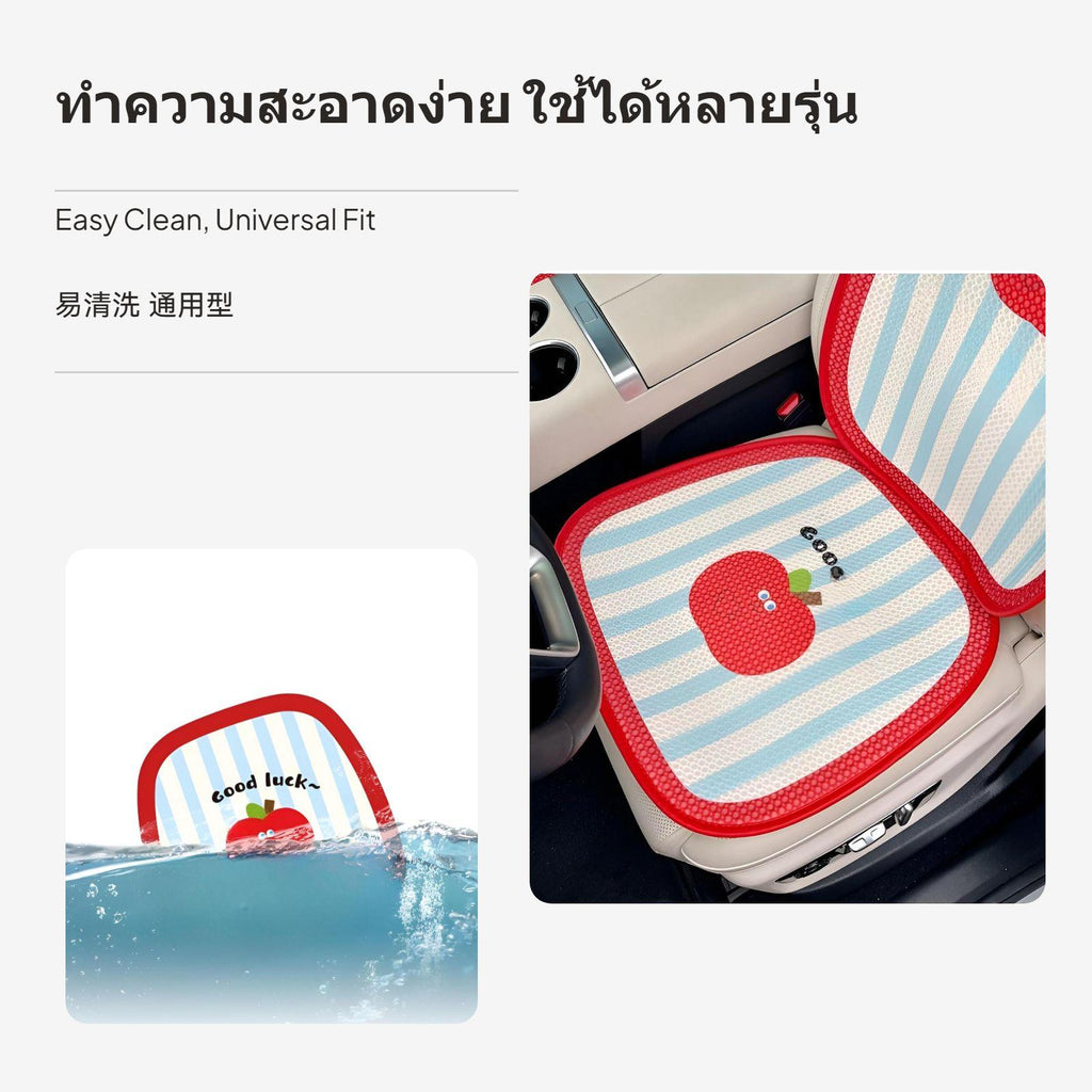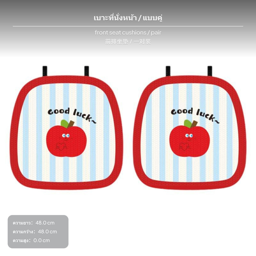 【Cute Cartoon Style】2-pack car seat cushion features an adorable apple cartoon pattern and fresh blue-white stripes, adding a lively touch to your car interior and suitable for various car models.【Breathable & All-Season Comfort】Made with 3D honeycomb mesh fabric and composite sponge, this seat cushion offers excellent breathability and moisture-wicking, keeping you cool in summer and comfortable in winter.【Anti-Slip & Secure Fit】The bottom is designed with anti-slip silicone particles and plum buckles to keep the cushion firmly in place during driving.【Easy to Clean & Durable】Supports washing, made from high-quality materials that resist fading after soaking, ensuring easy maintenance and long-lasting use.【Versatile Usage Scenarios】Perfect for family cars, long-distance driving, and daily commuting, meeting diverse needs.Specification: