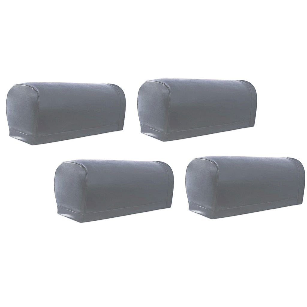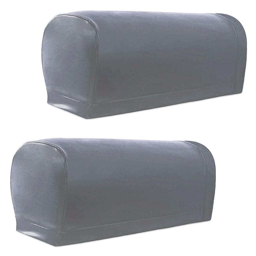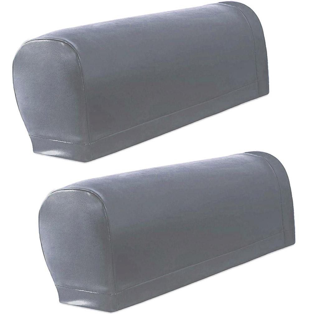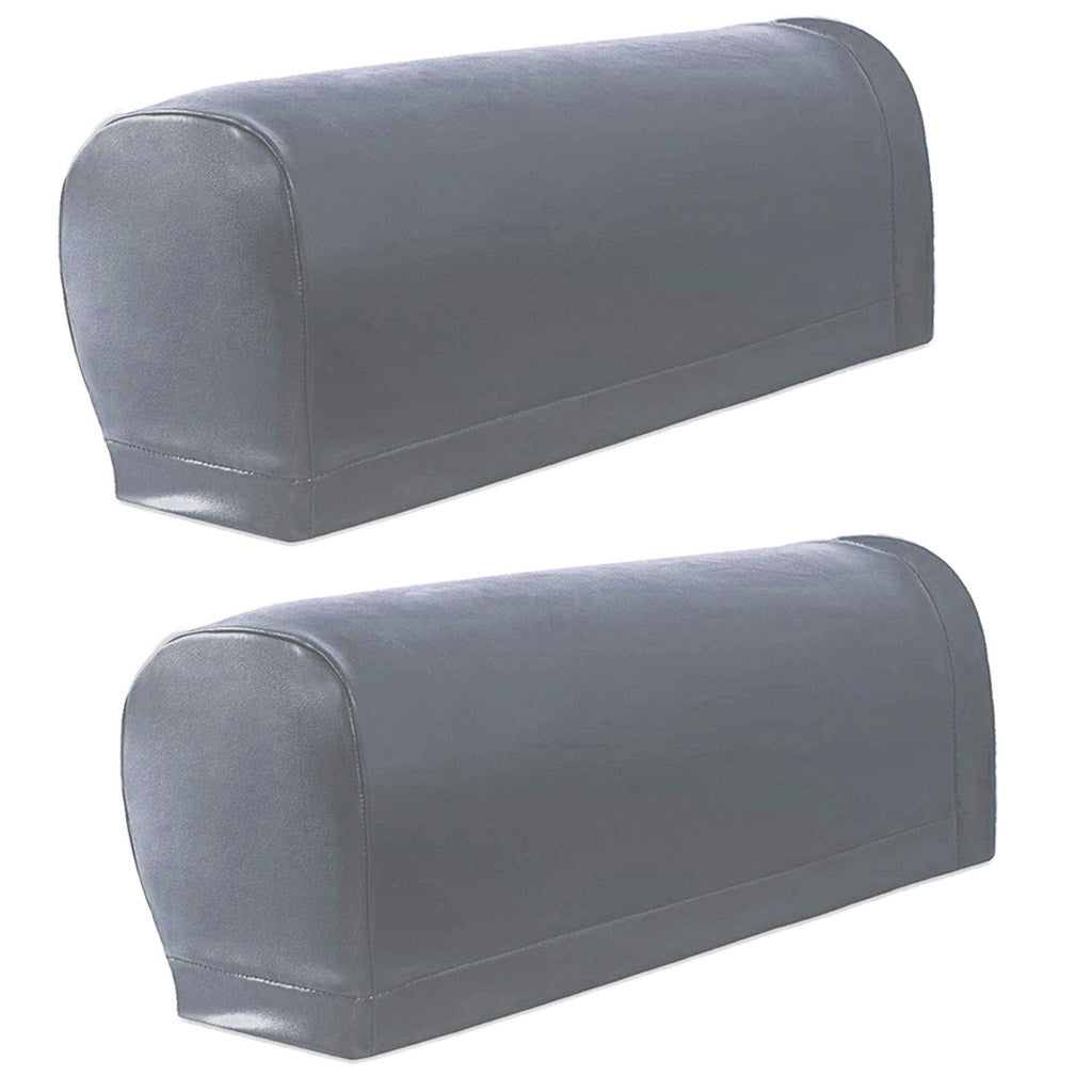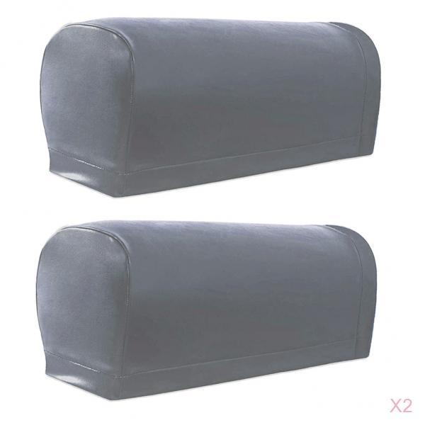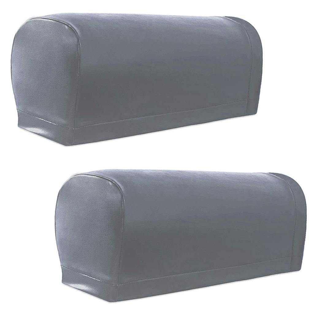 Maxbell 2 Pairs Non-slip PU Leather Stretch Furniture Sofa Armrest Covers Gray