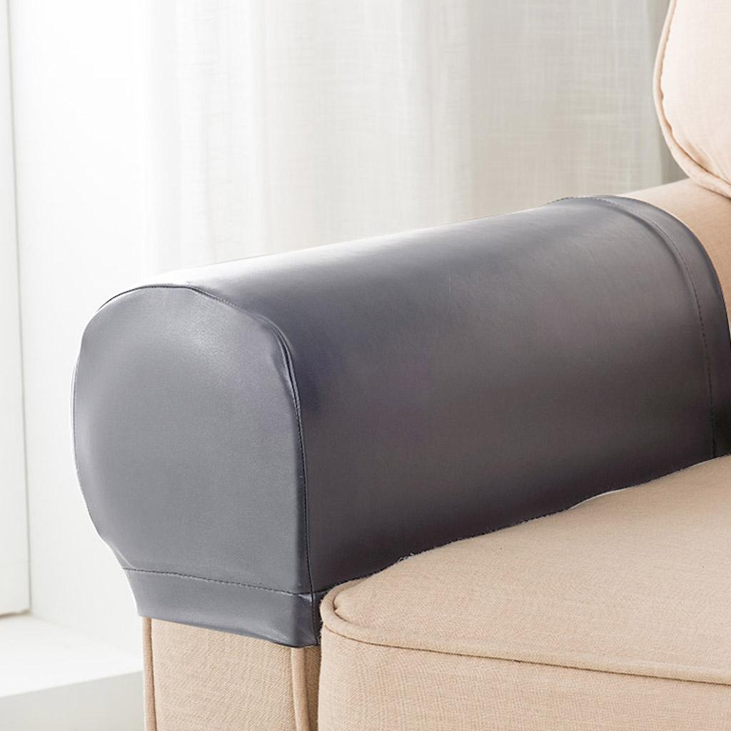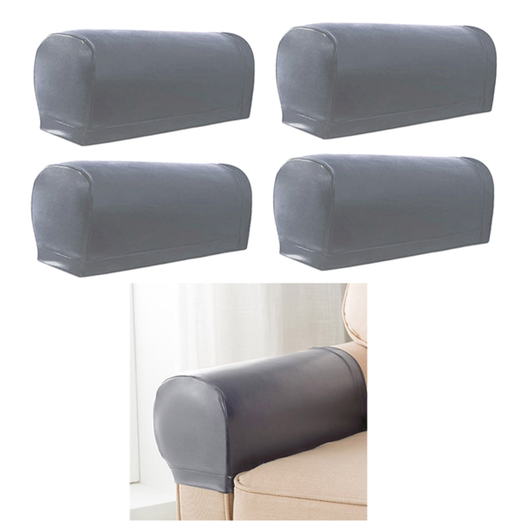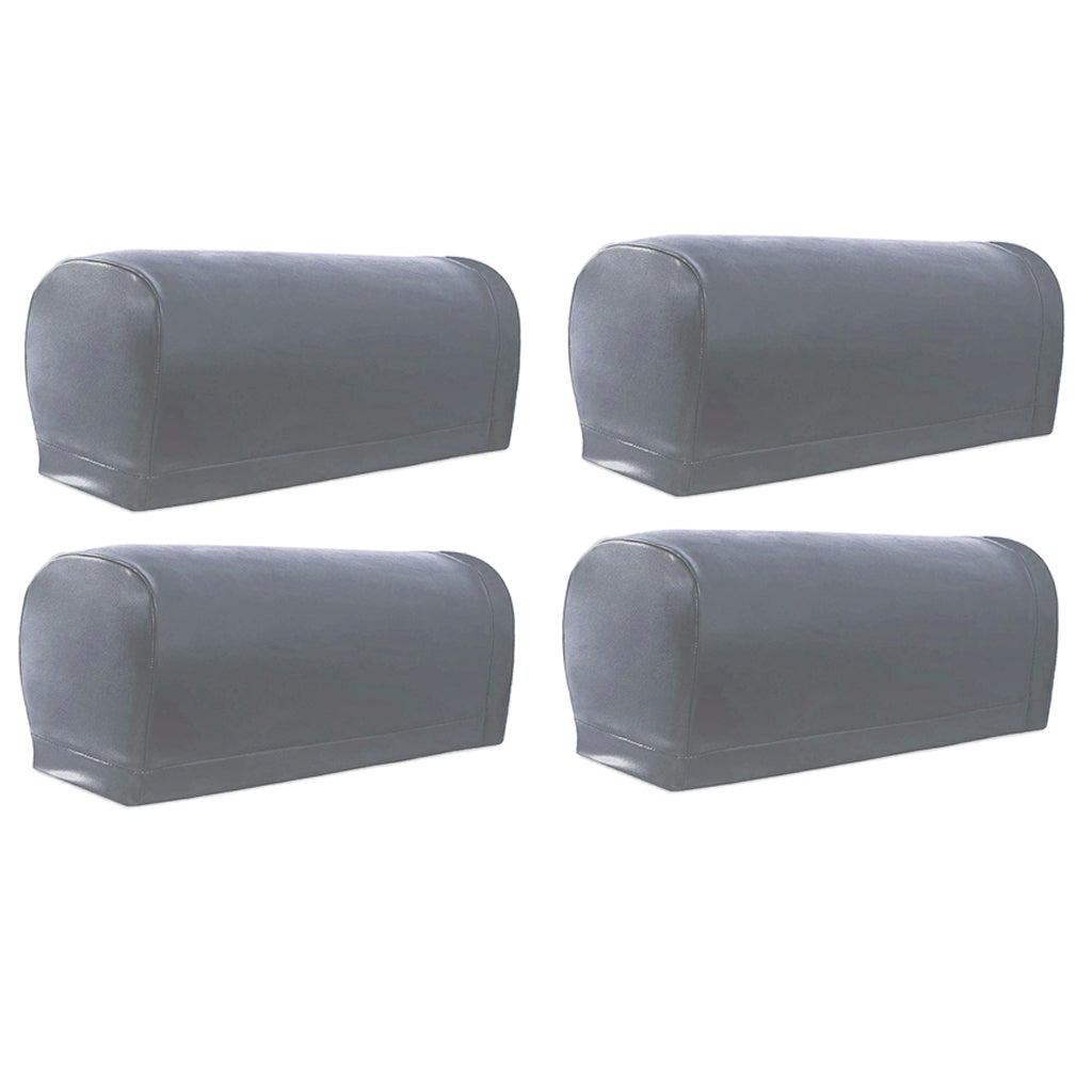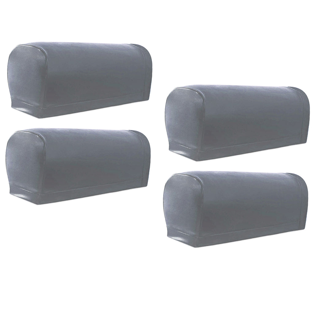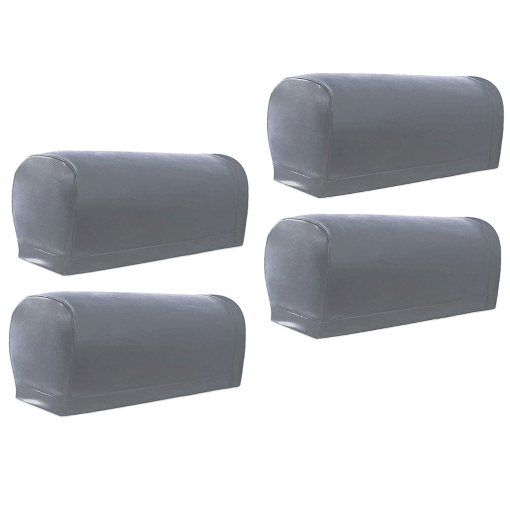 Maxbell 2 Pairs Non-slip PU Leather Stretch Furniture Sofa Armrest Covers Gray