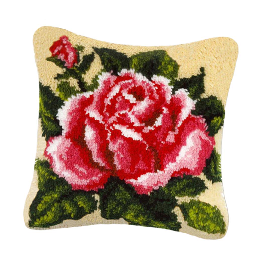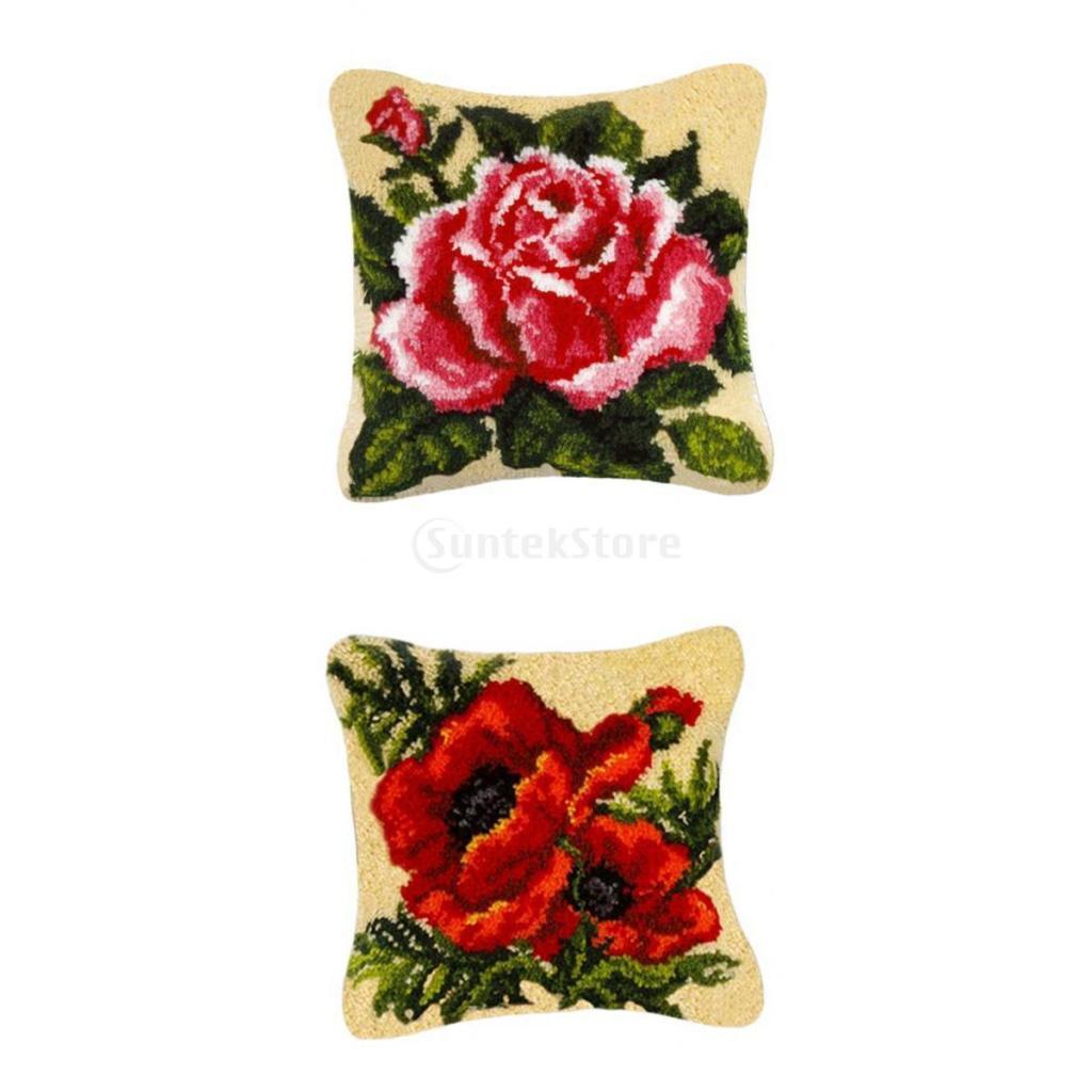 Maxbell 2 Pieces Flower Pattern Latch Hook Kits Pillow Case Cushion Cover